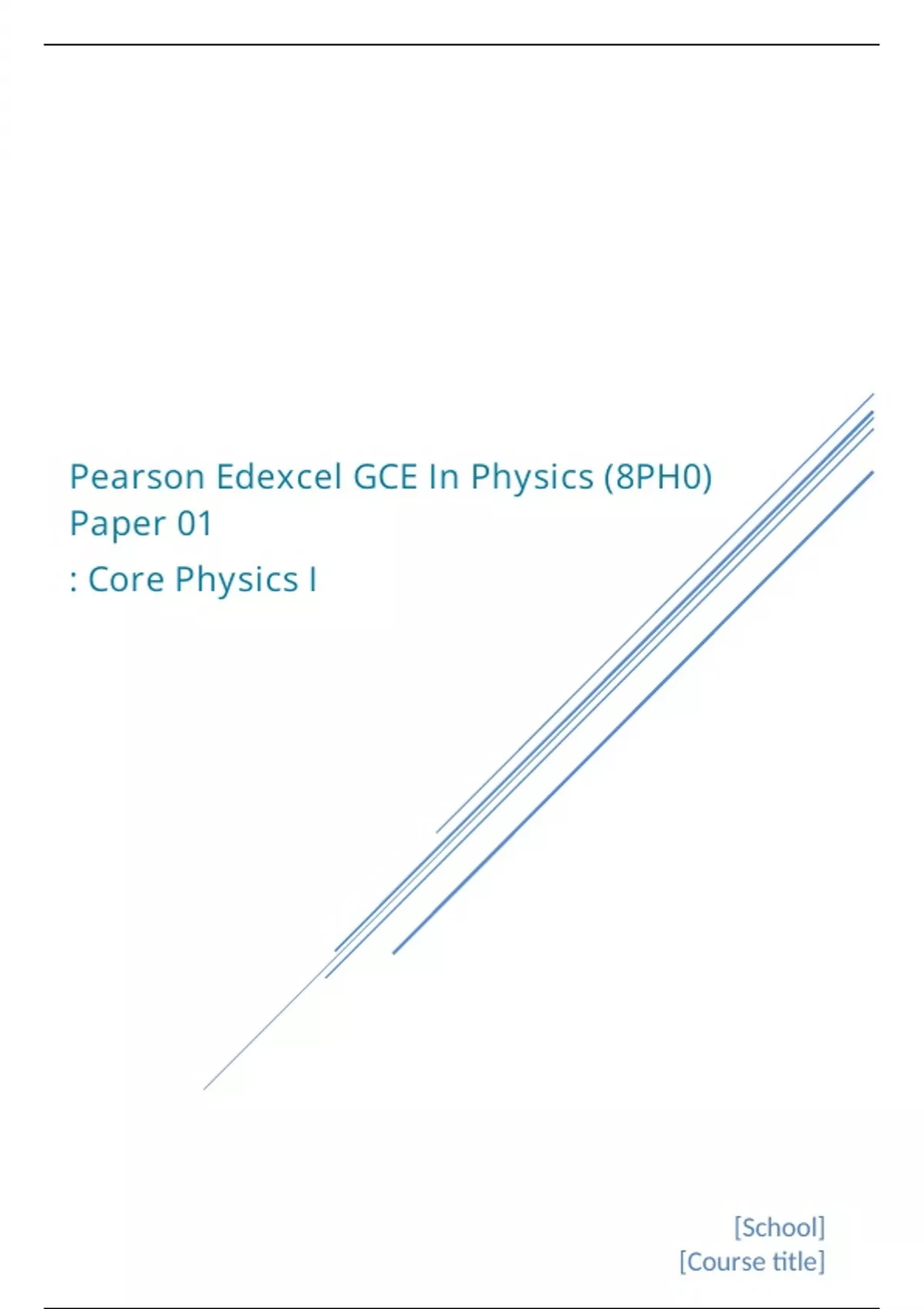 Pearson Edexcel GCE In Physics (8PH0) Paper 01 : Core Physics 1