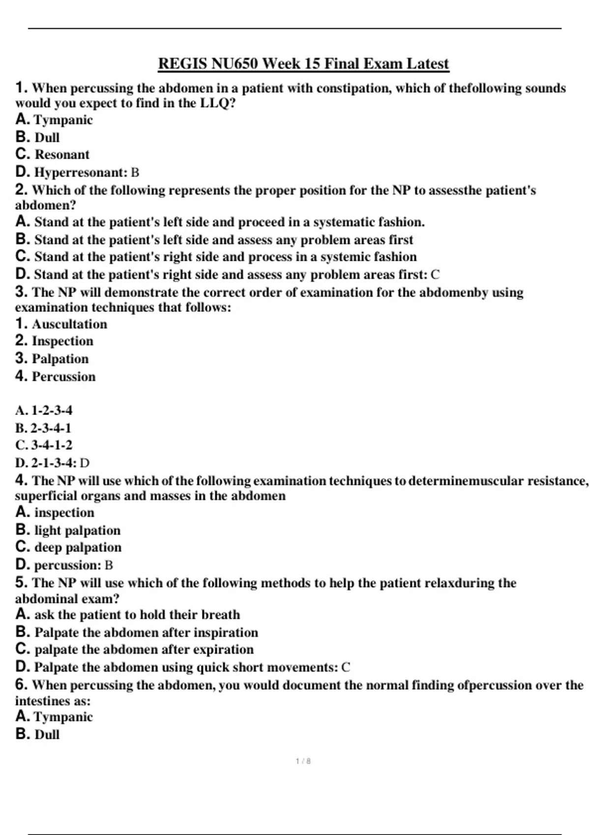 REGIS NU650 Week 15 Final Exam Latest 2024. NEW!!!! NEW!!!! REGIS NU650 Week 15 Final Exam Latest 2024. NEW!!! NEW!!!! REGIS NU650 Week 15 Final Exam Latest 2024. NEW!!!! NEW!!! REGIS NU650 Week 15 Final Exam Latest 2024. NEW!!!!NEW!!!
