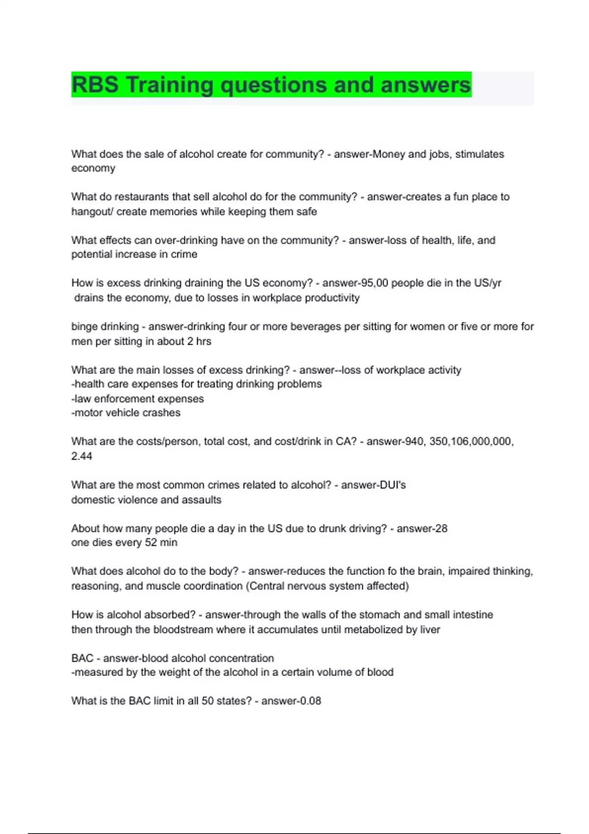 RBS Training questions and answers