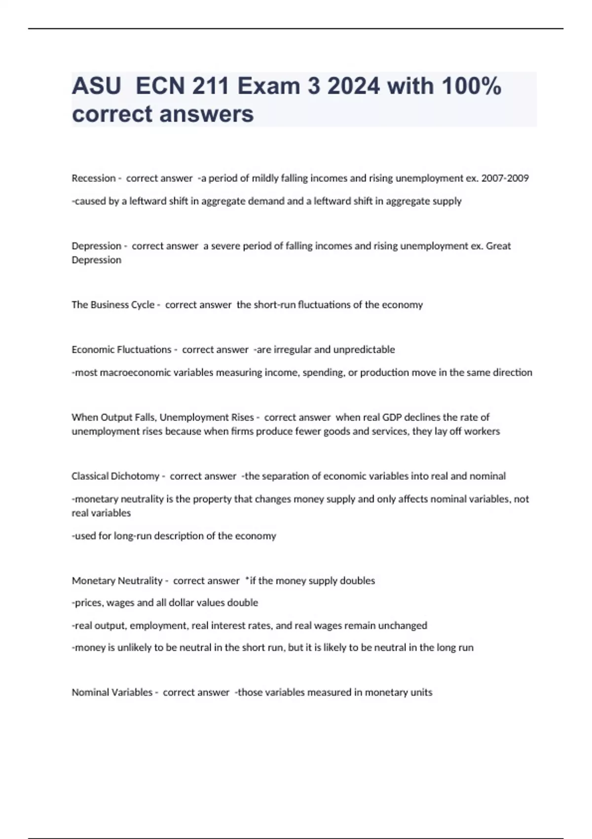 asu ecn 211 exam 3 2024 with 100 correct answers