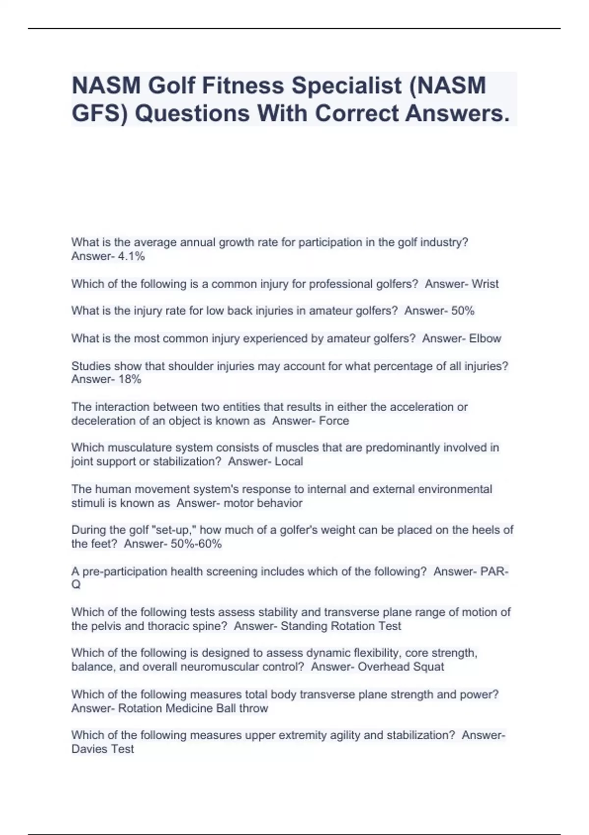 NASM Golf Fitness Specialist (NASM GFS) Questions With Correct Answers.