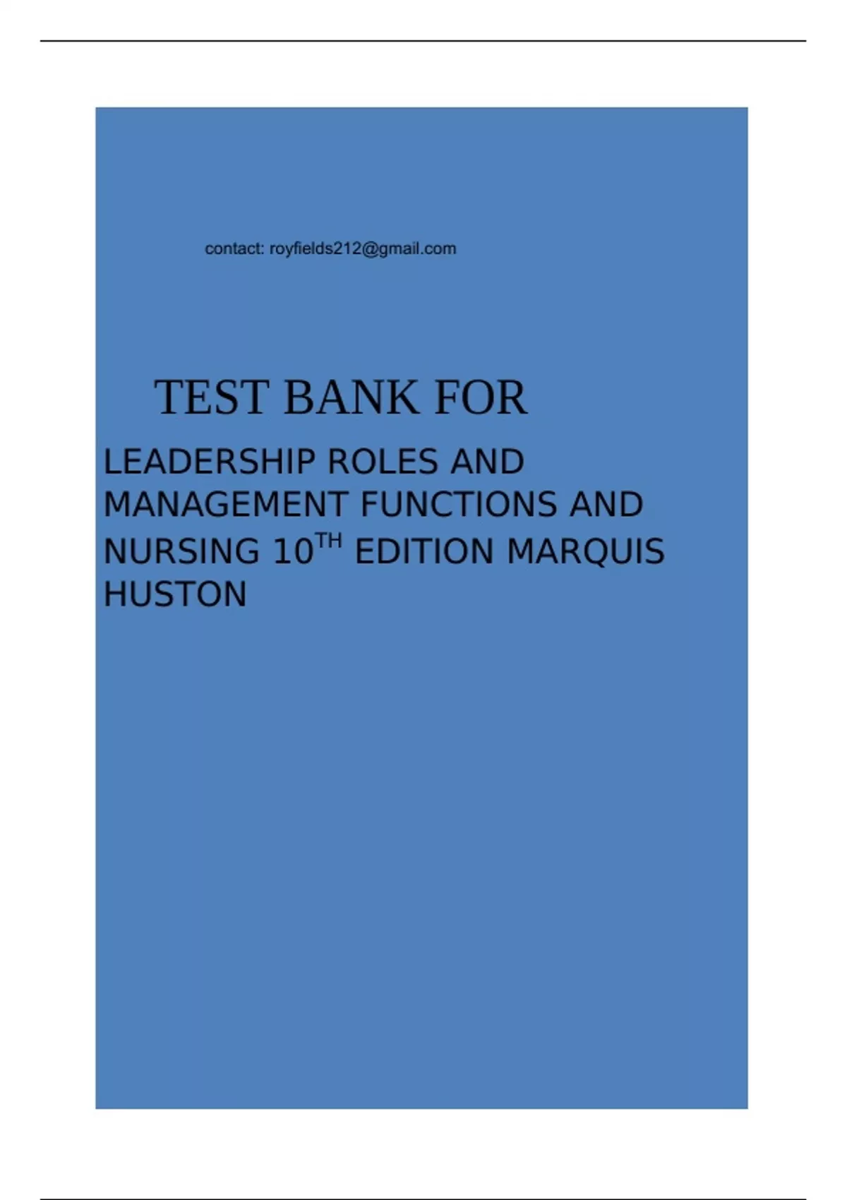 TEST BANK FOR LEADERSHIP ROLES AND MANAGEMENT FUNCTIONS AND NURSING 10TH EDITION MARQUIS HUSTON