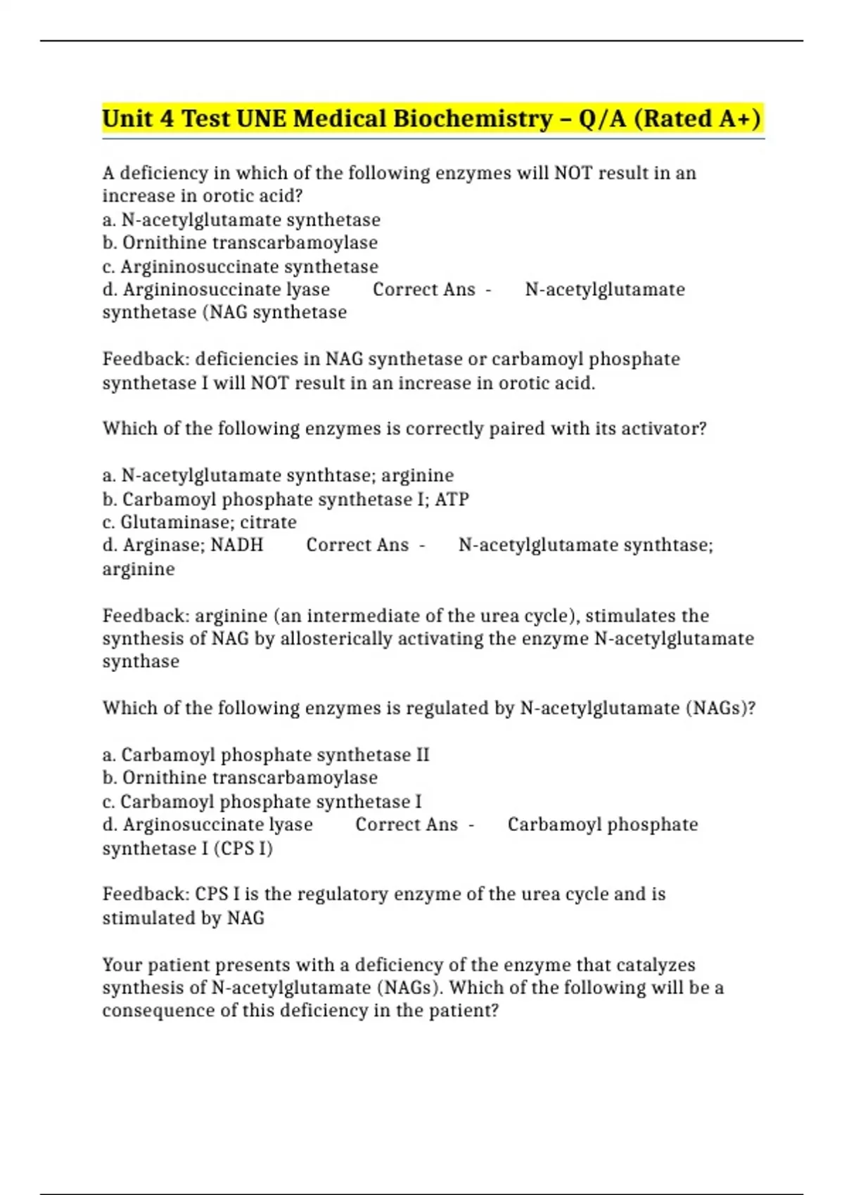d. Arginosuccinate lyase Correct Ans - Carbamoyl phosphate