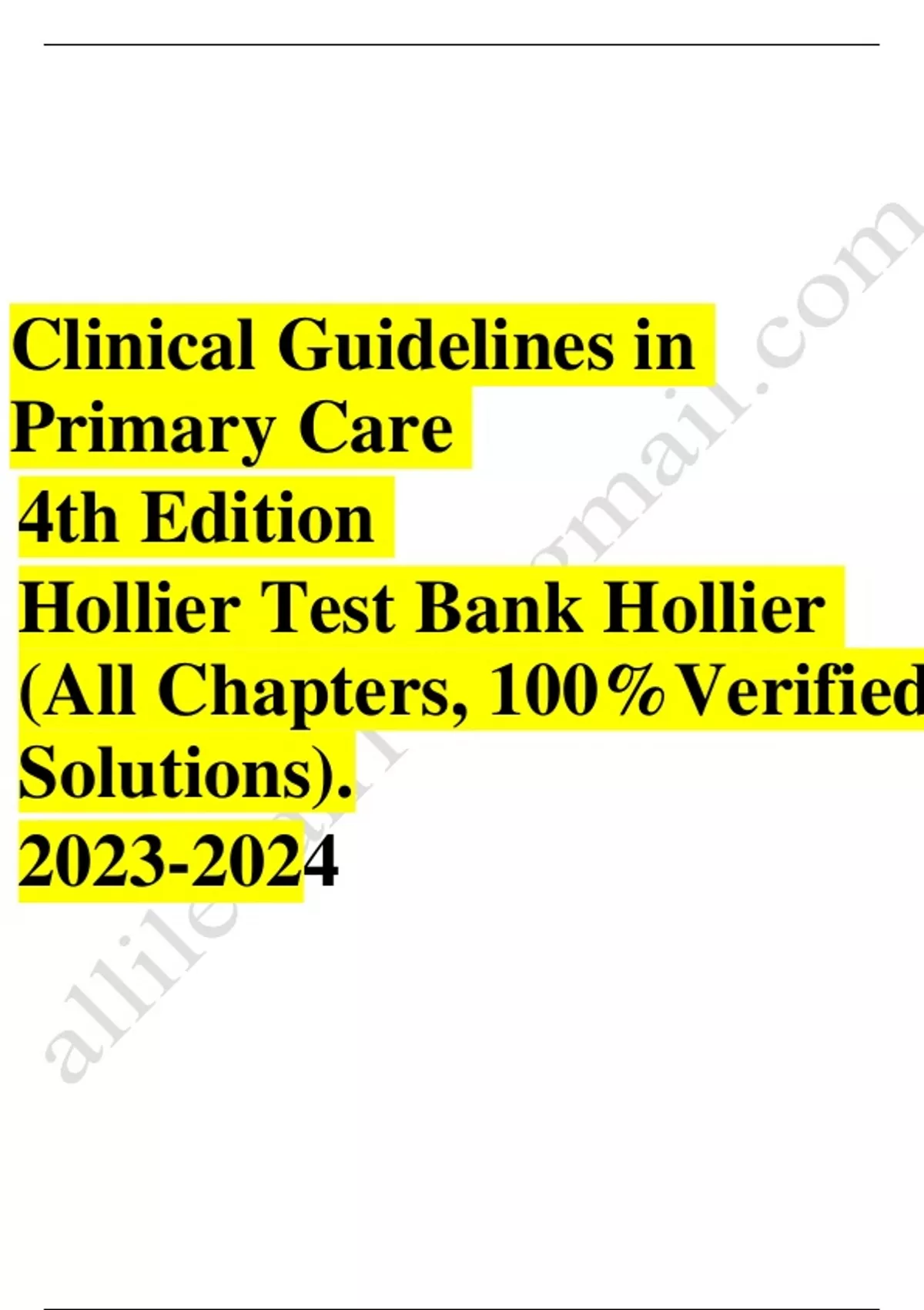 Test bank clinical guidelines in primary care 4th edition hollier test bank hollier all chapters 100 verified solutions Latest update