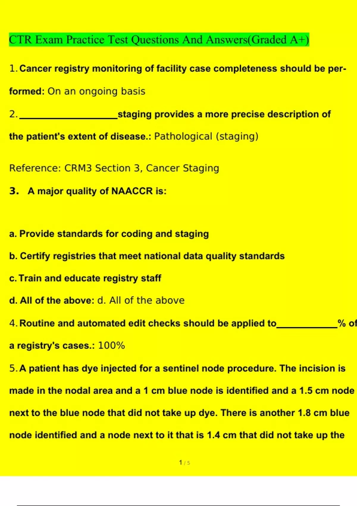ctr exam practice test already graded a