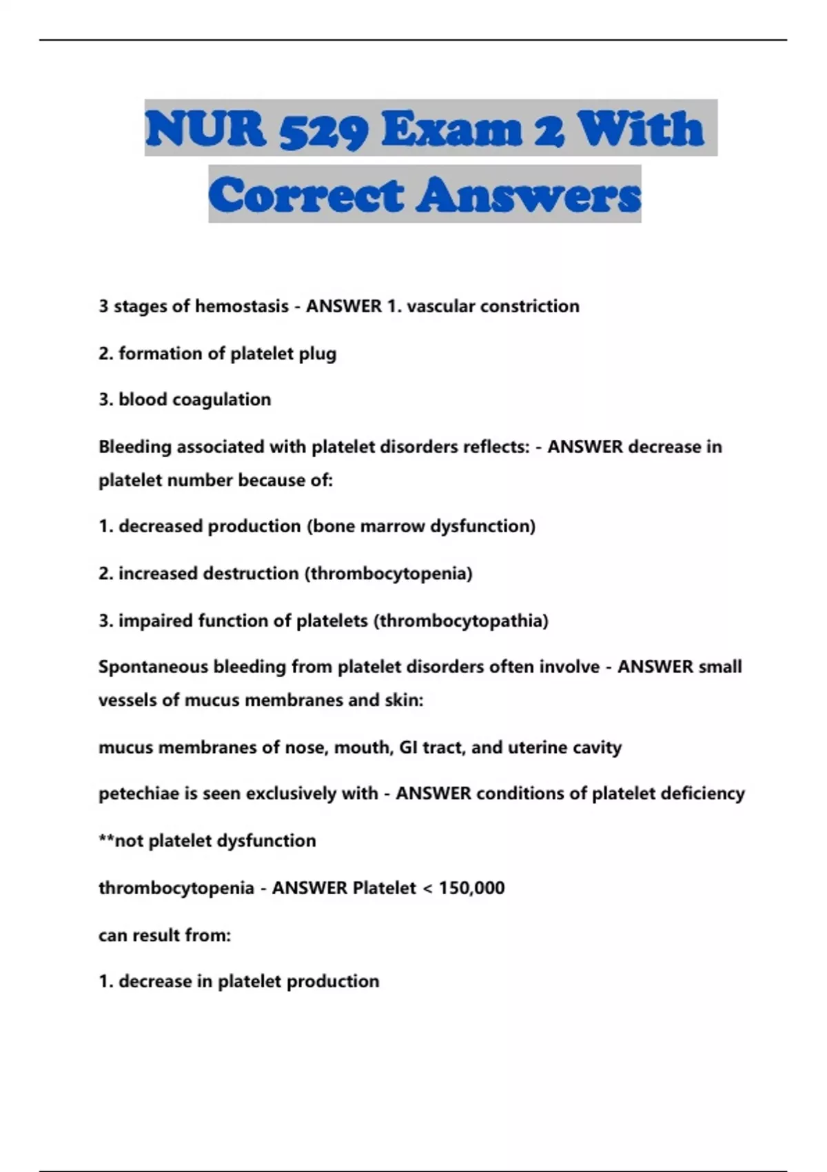 NUR 529 BUNDLED EXAMS WITH SOLUTION