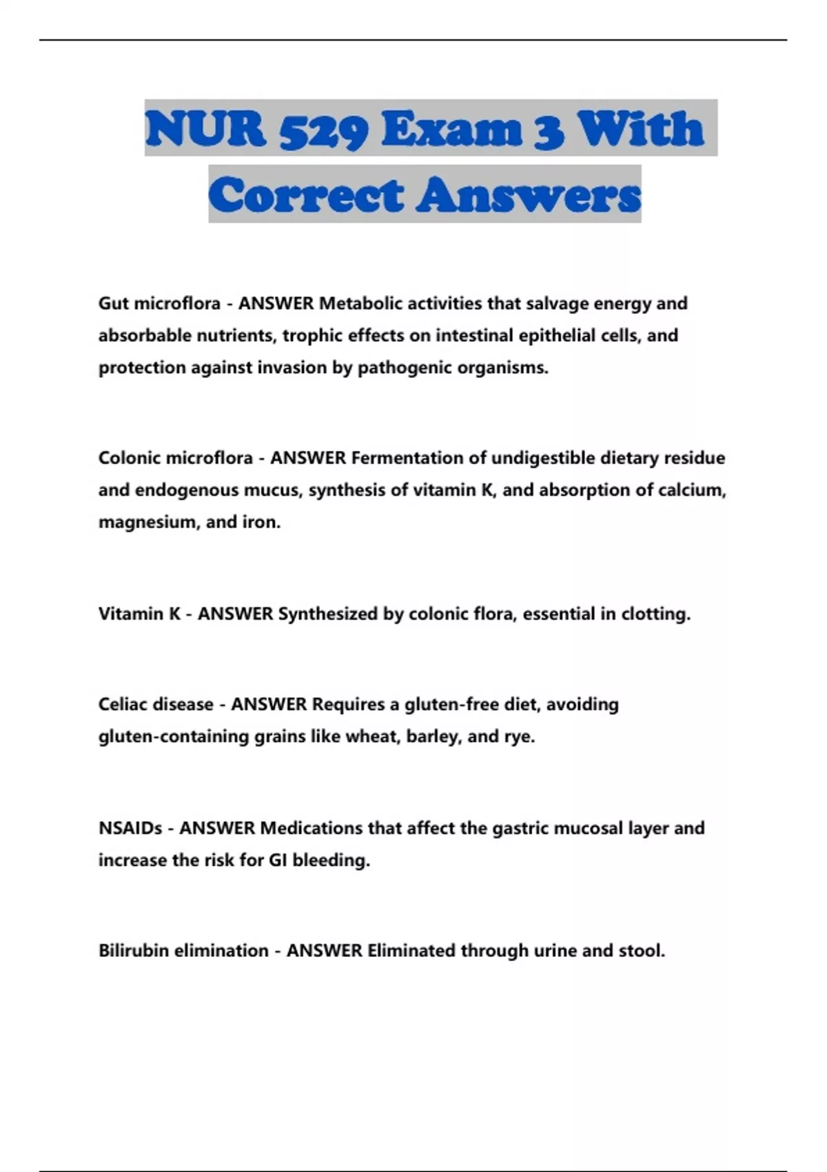 NUR 529 BUNDLED EXAMS WITH SOLUTION