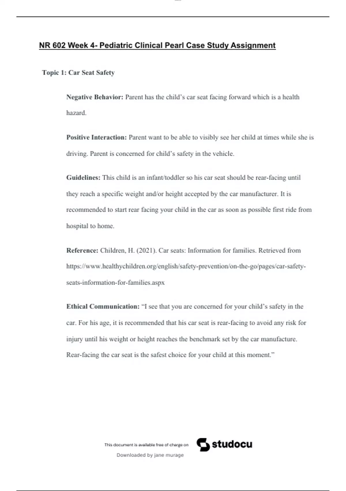 nr 602 week 4 pediatric clinical pearl case study