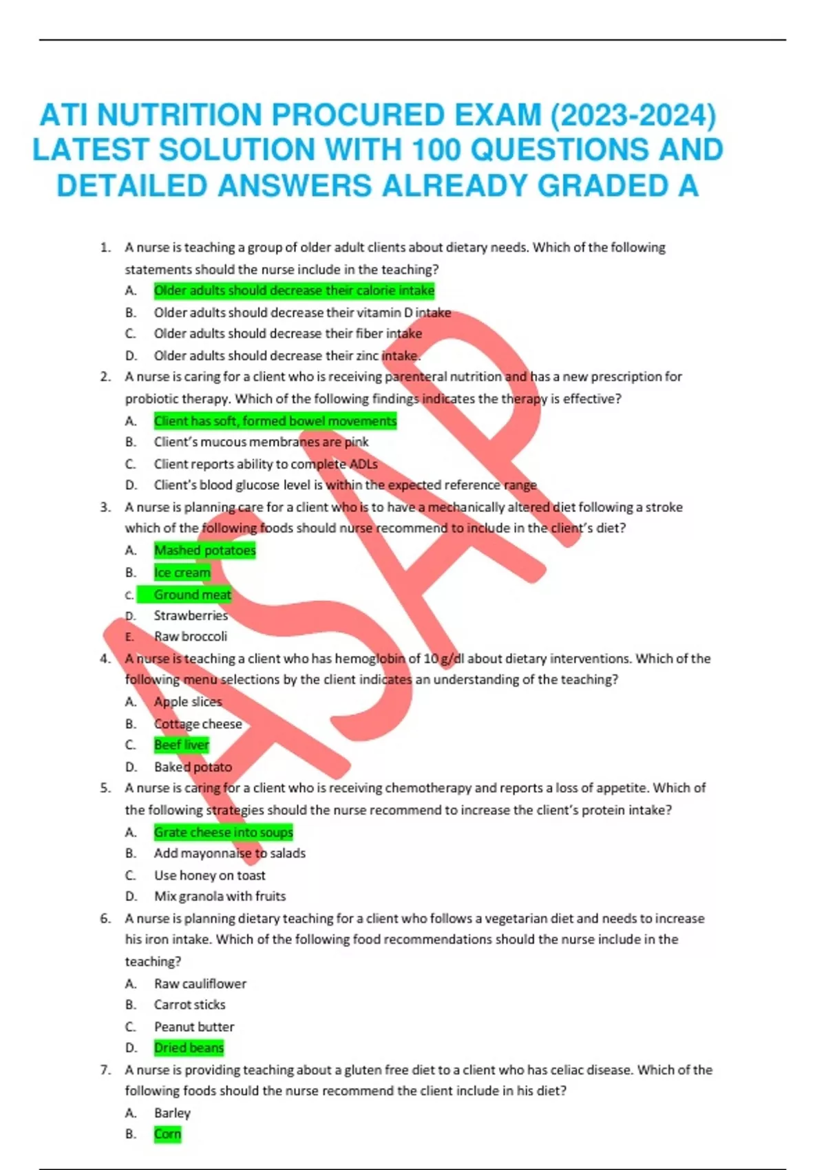 ATI NUTRITION PROCURED EXAM () LATEST SOLUTION WITH 100 QUESTIONS AND DETAILED ANSWERS ALREADY GRADED A