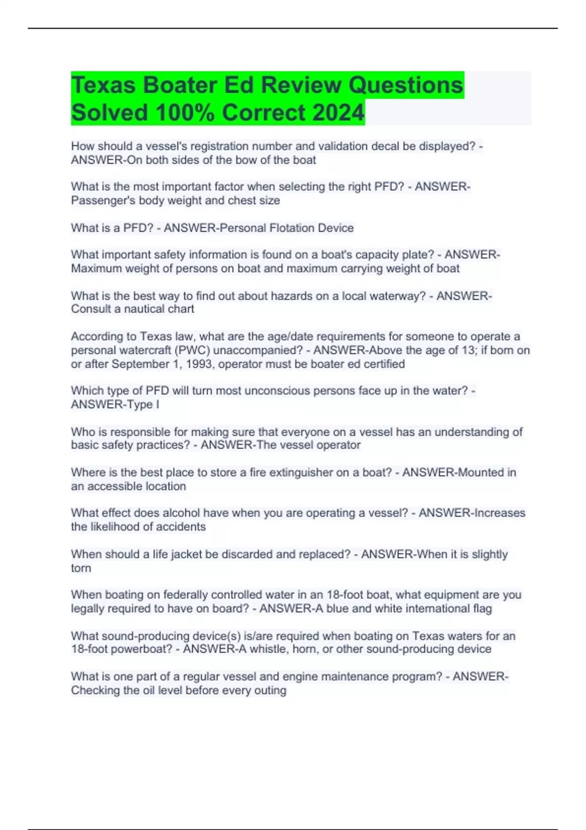 Texas Boater Ed Review Questions Solved 100% Correct 2024