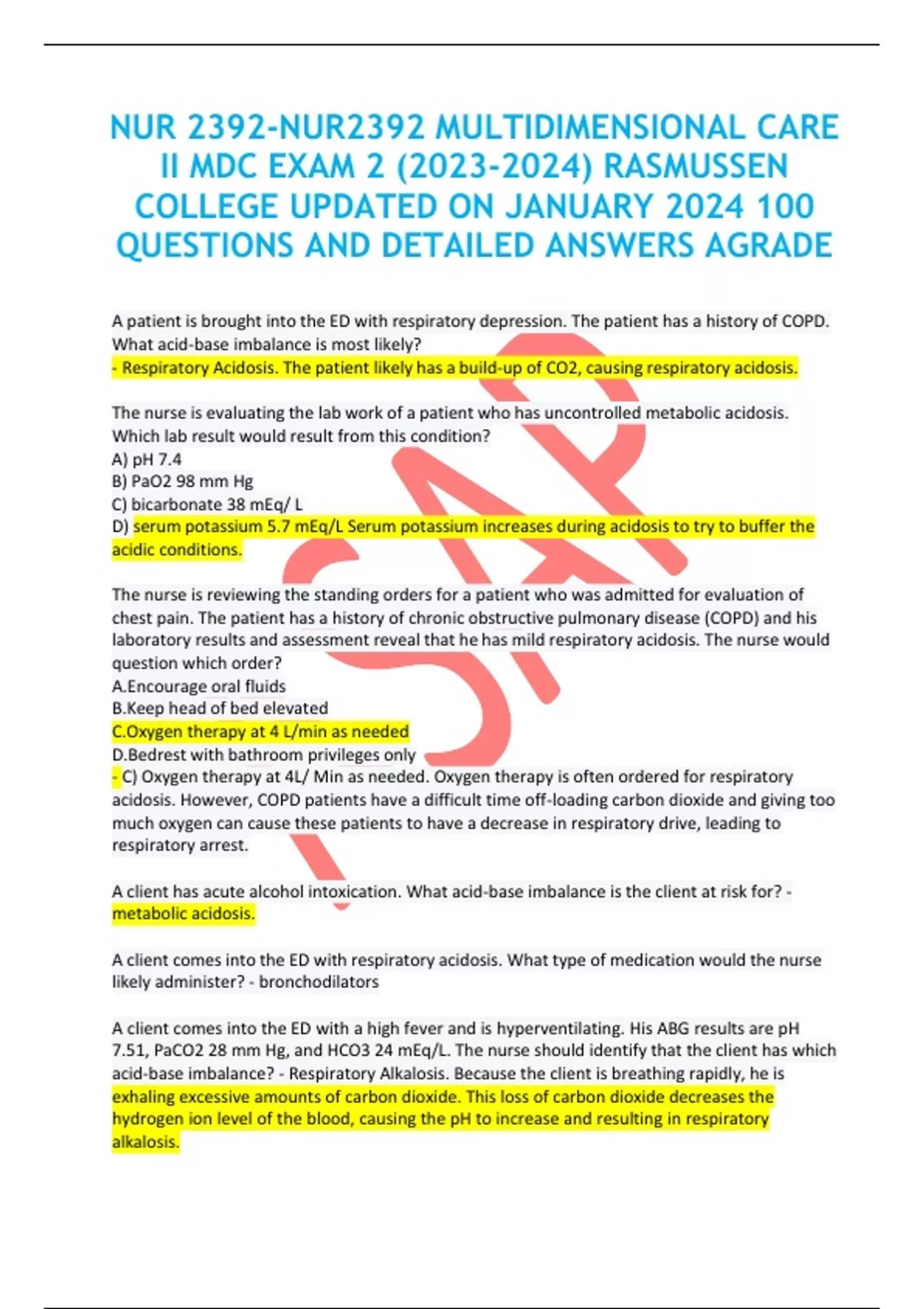 NUR 2392-NUR2392 MULTIDIMENSIONAL CARE II MDC EXAM 2 () RASMUSSEN COLLEGE UPDATED ON JANUARY 2024 100 QUESTIONS AND DETAILED ANSWERS AGRADE
