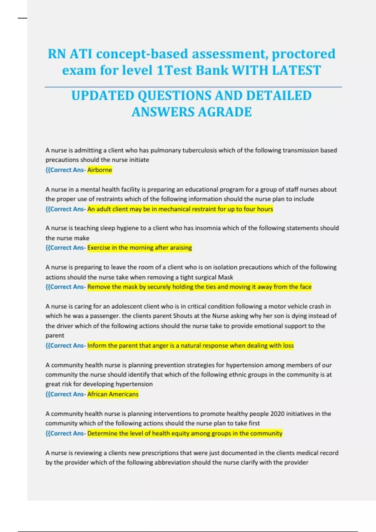 RN ATI concept-based assessment, proctored exam for level 1Test Bank WITH LATEST UPDATED QUESTIONS AND DETAILED ANSWERS AGRADE