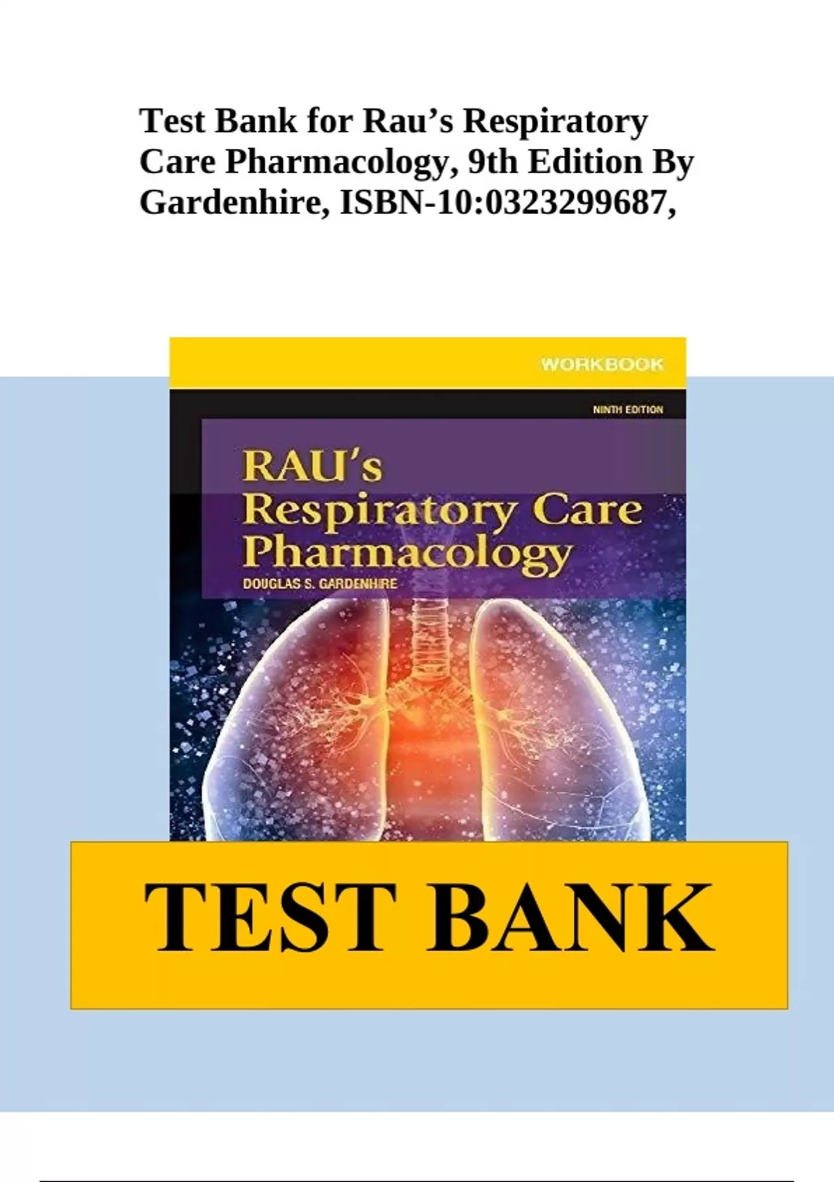 Test Bank for Rau’s Respiratory Care Pharmacology, 9th Edition By Gardenhire, ISBN-10:0323299687 Complete All Chapters 2024
