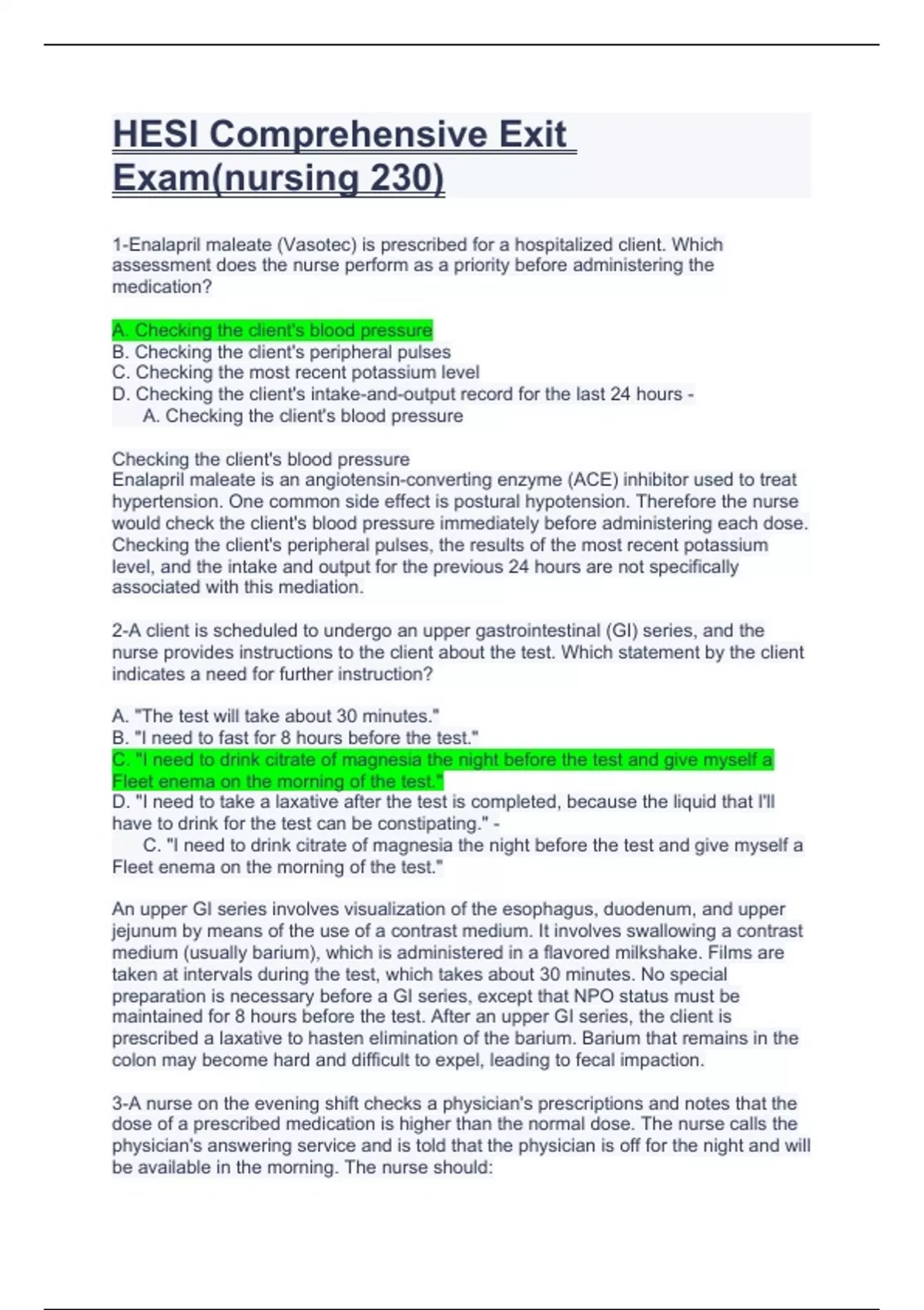 Exam for HESI Comprehensive Exit Exam(nursing 230)