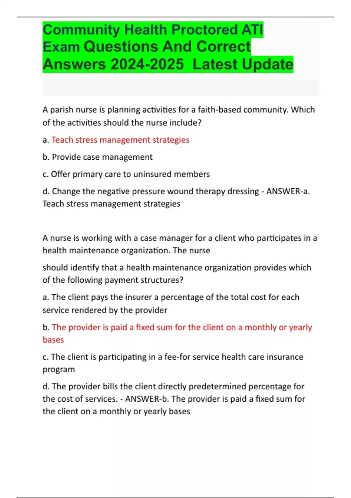 Community Health Proctored ATI Exam Questions And Correct Answers Latest Update