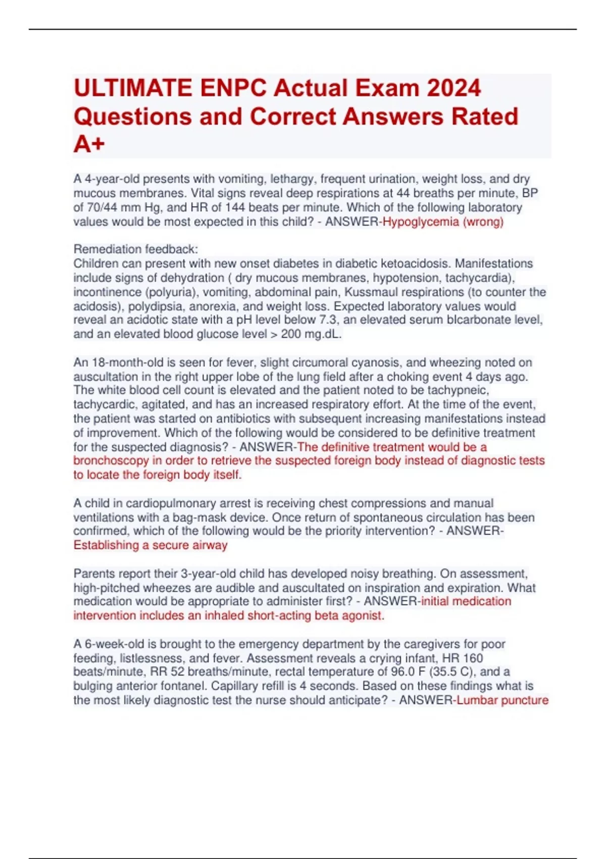 ULTIMATE ENPC Actual Exam 2024 Questions and Correct Answers Rated A+