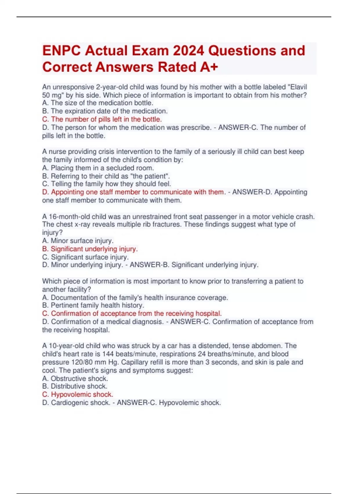 D. Cardiogenic shock. - ANSWER-C. Hypovolemic shock.