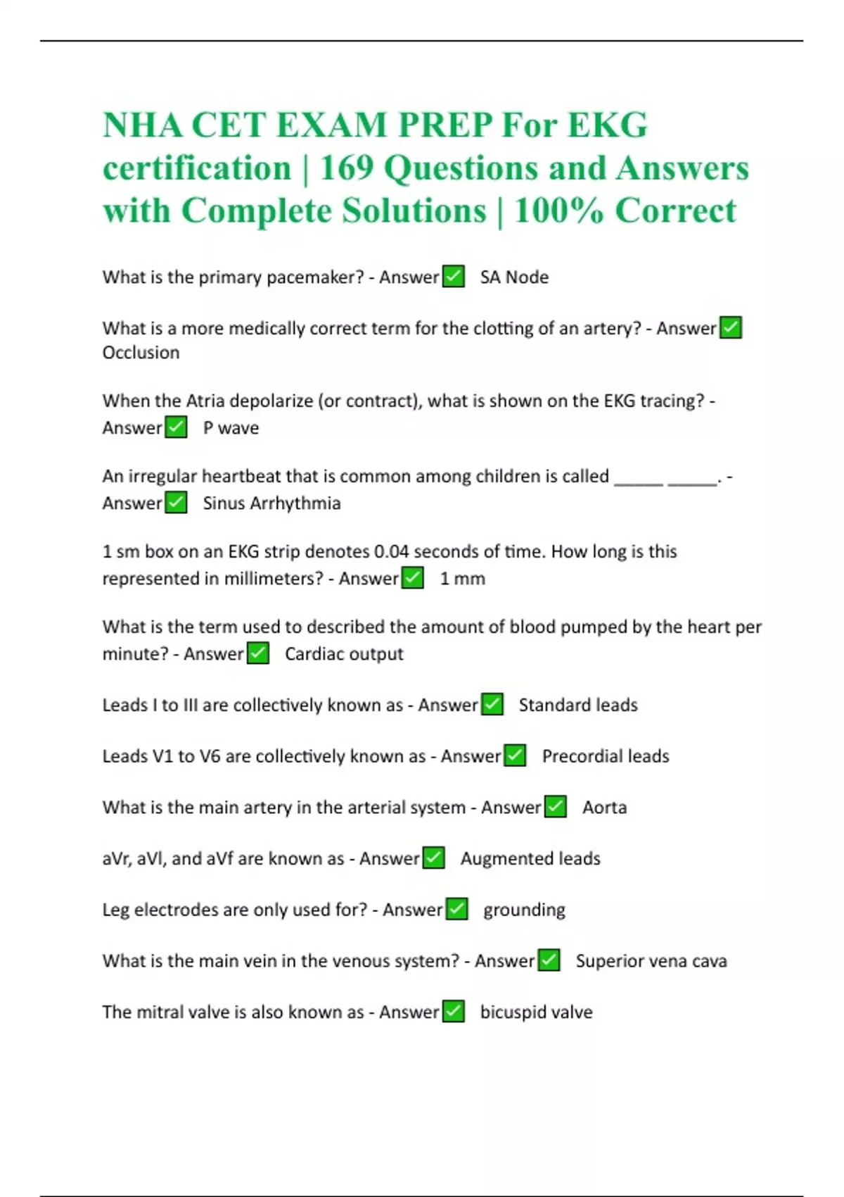 NHA CET EXAM PREP For EKG certification | 169 Questions and Answers with Complete Solutions | 100% Correct