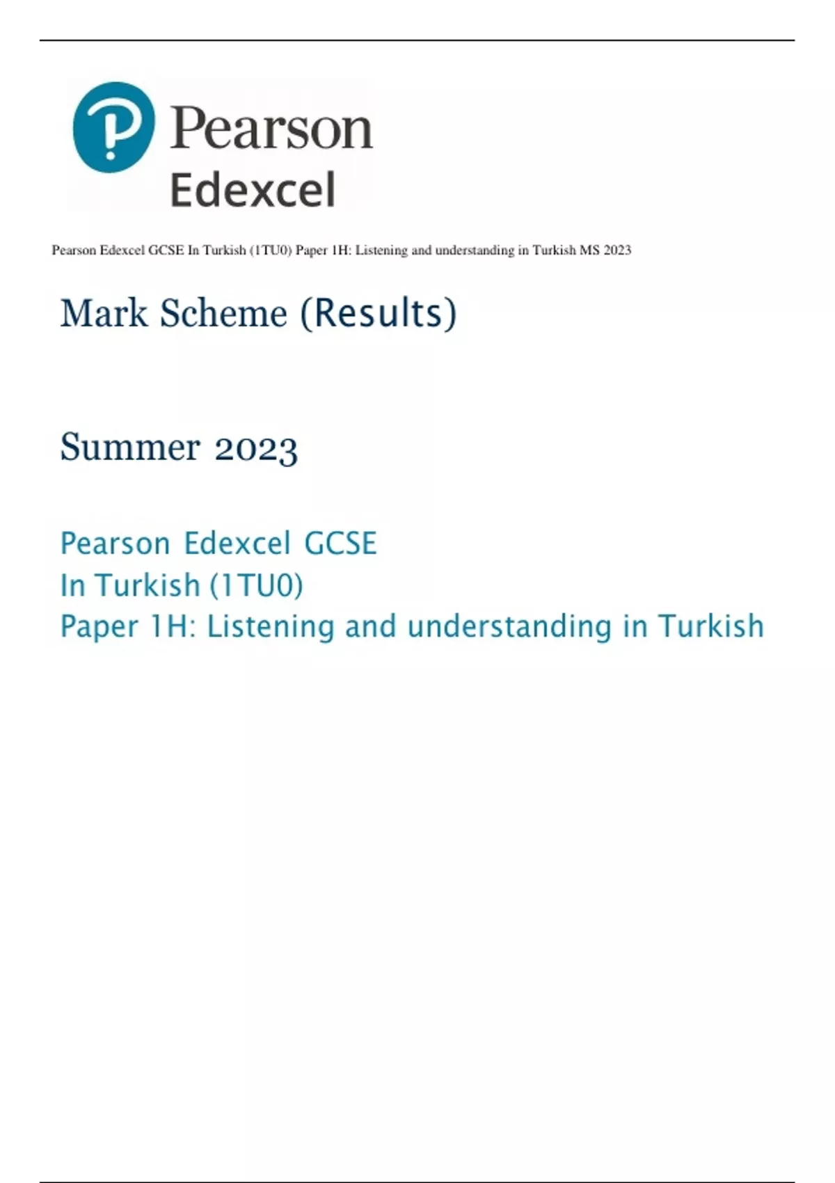 Pearson Edexcel GCSE In Turkish (1TU0) Paper 1H: Listening and understanding in Turkish MS 2023