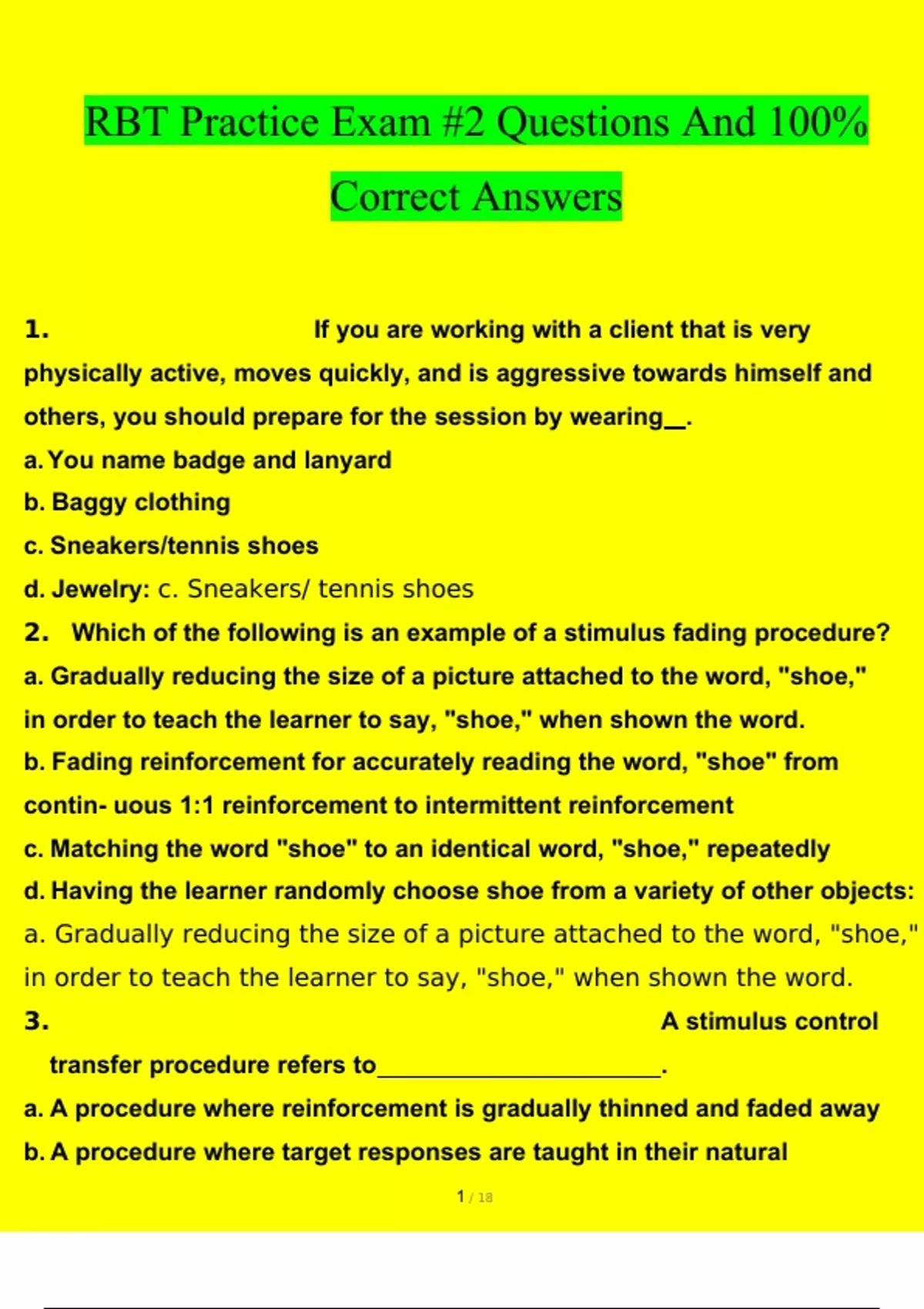 RBT Practice Exam #2 Questions with accurate answers. Graded A+