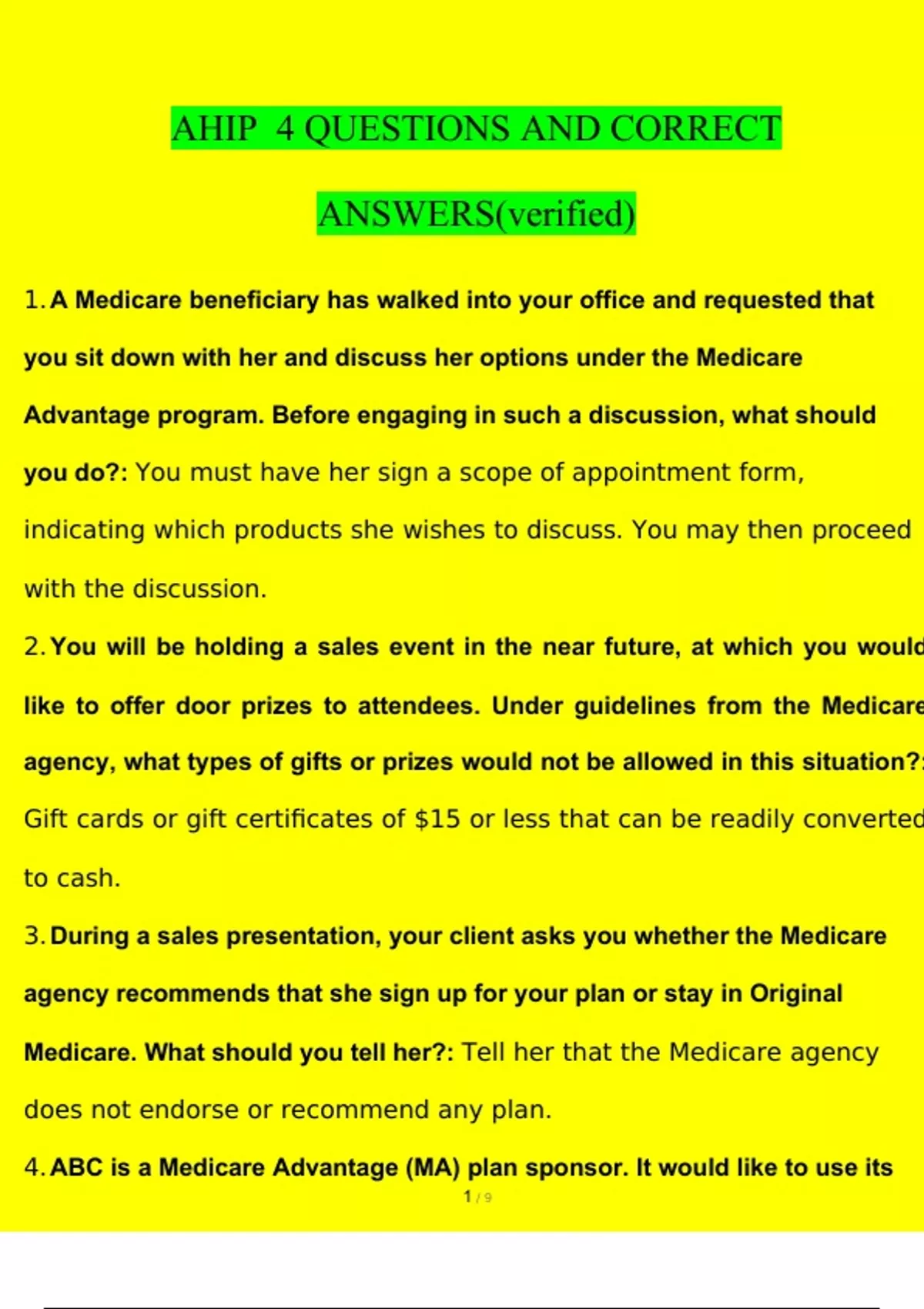 AHIP – 4 QUESTIONS WITH CORRECT ANSWERS VERIFIED CORRECT
