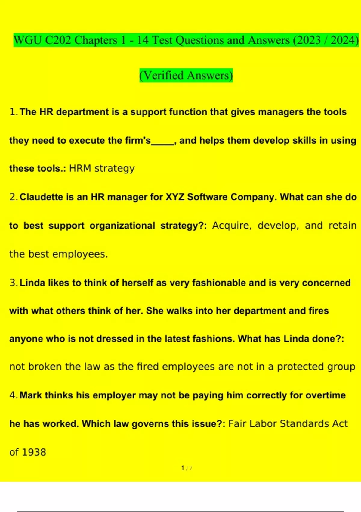 WGU C202 Chapters 1 - 14 Test Questions and Answers (2023 / 2024) (Verified Answers)