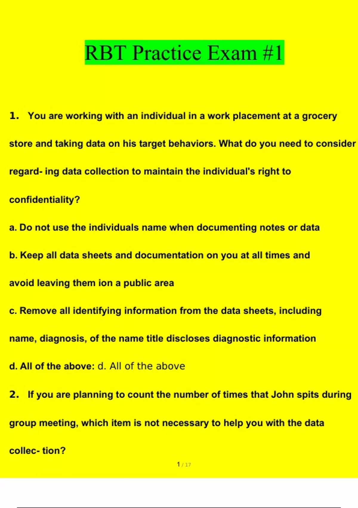 rbt practice exam 1 study guide 2023 questions an