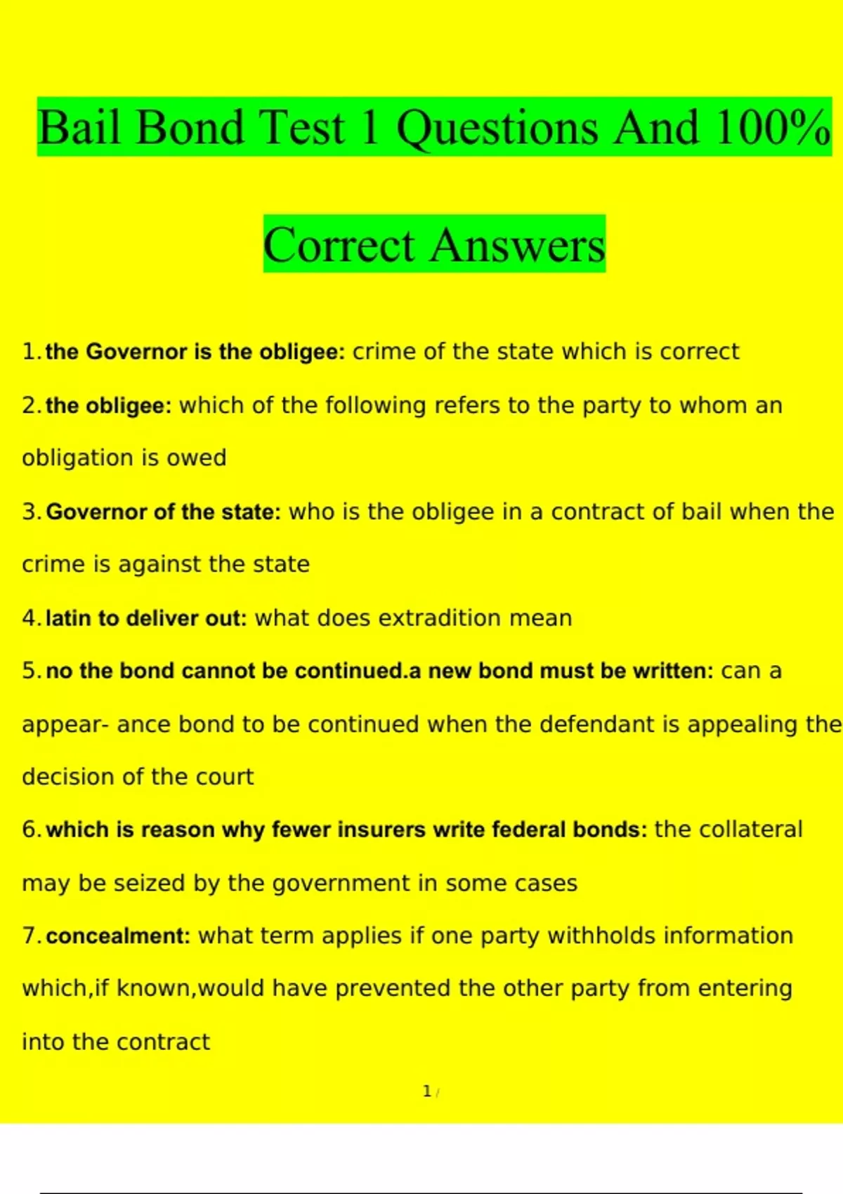 bail bond test 1 Questions and Answers with Complete Solutions 100% verified
