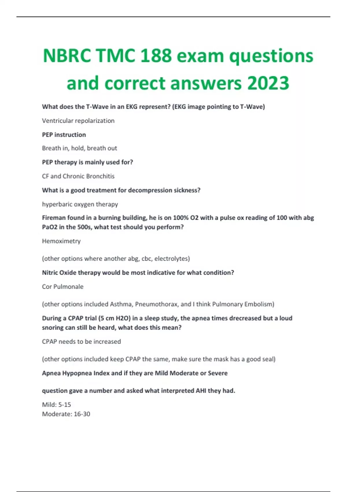 NBRC TMC 188 exam questions and correct answers 2023/2024
