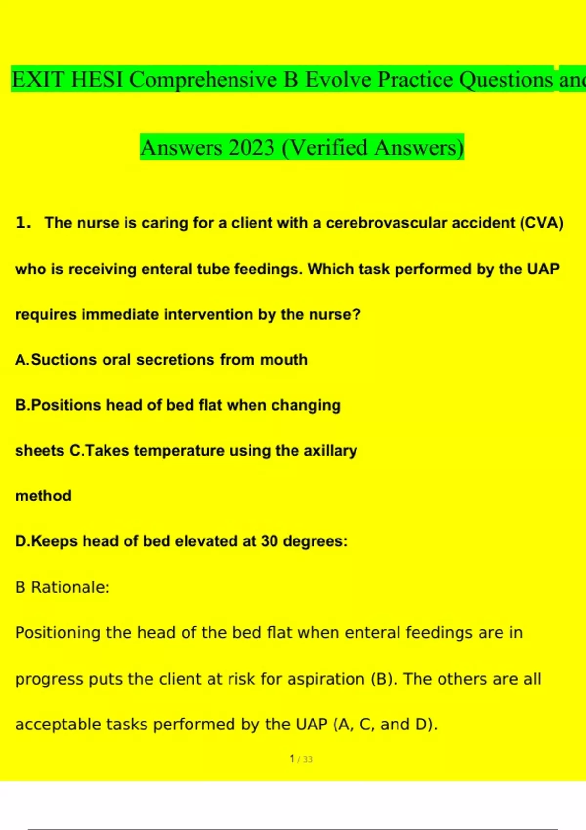 EXIT HESI Comprehensive B Evolve Practice Questions and Answers Latest 2022/2023