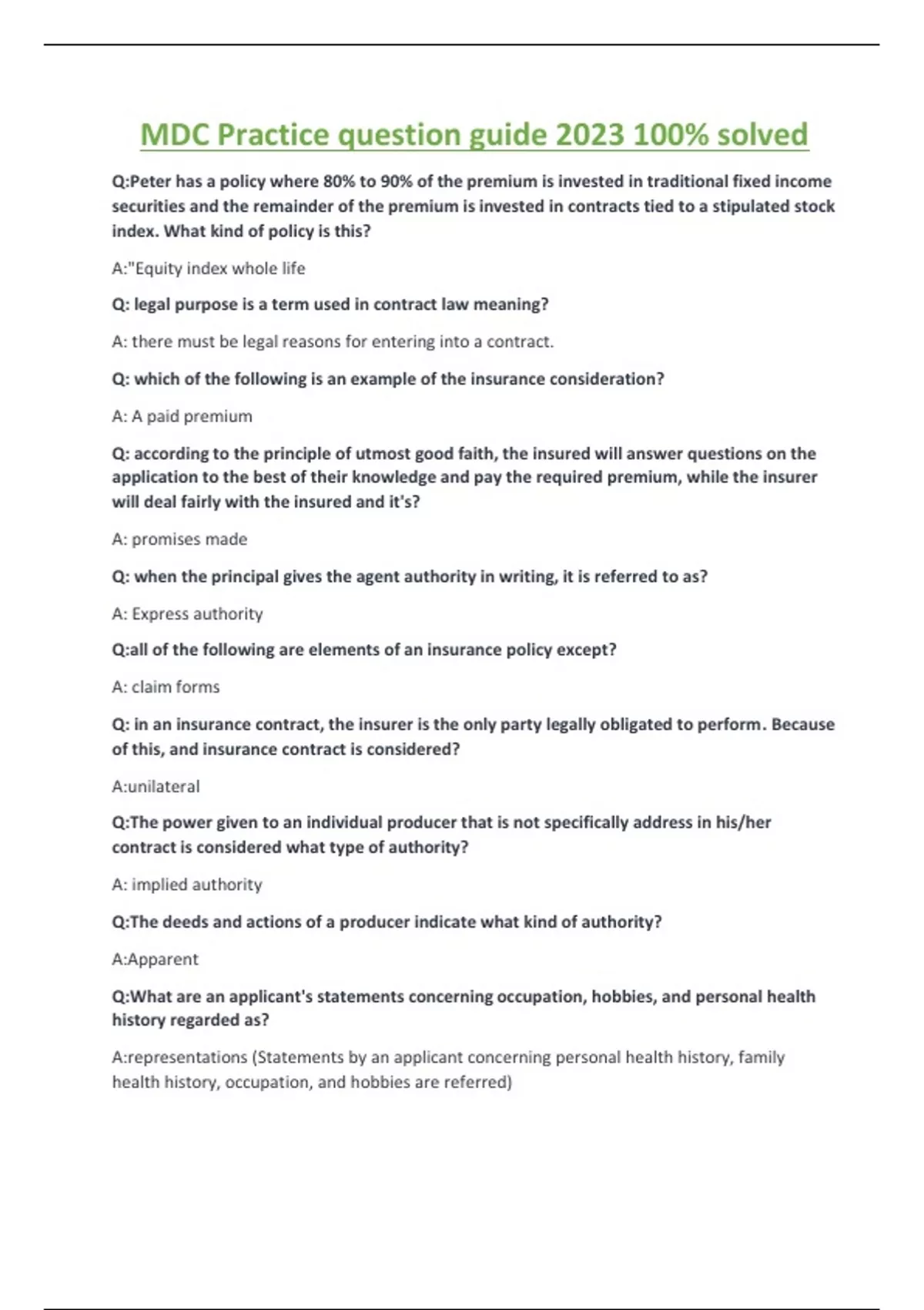 MDC Practice question guide 2023/2024 with Answers