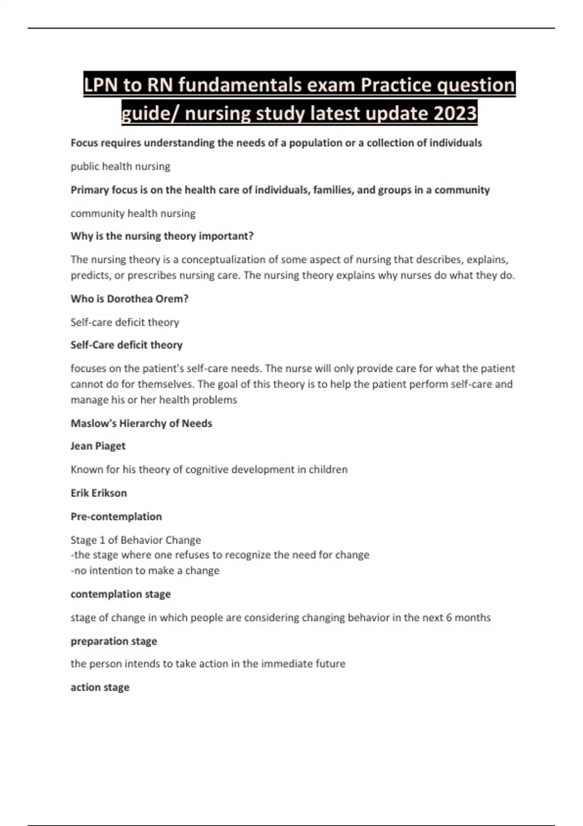 LPN to RN fundamentals exam Practice question guide-nursing study latest 2023/2024