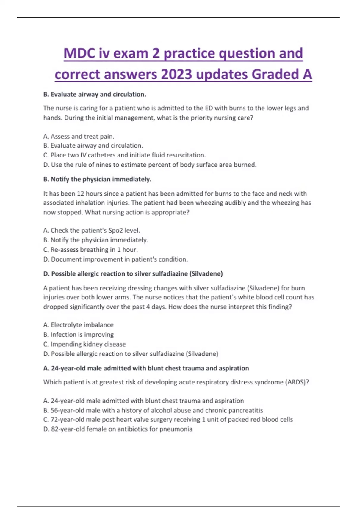 MDC iv exam 2 practice question and correct answers Latest 2023/2024
