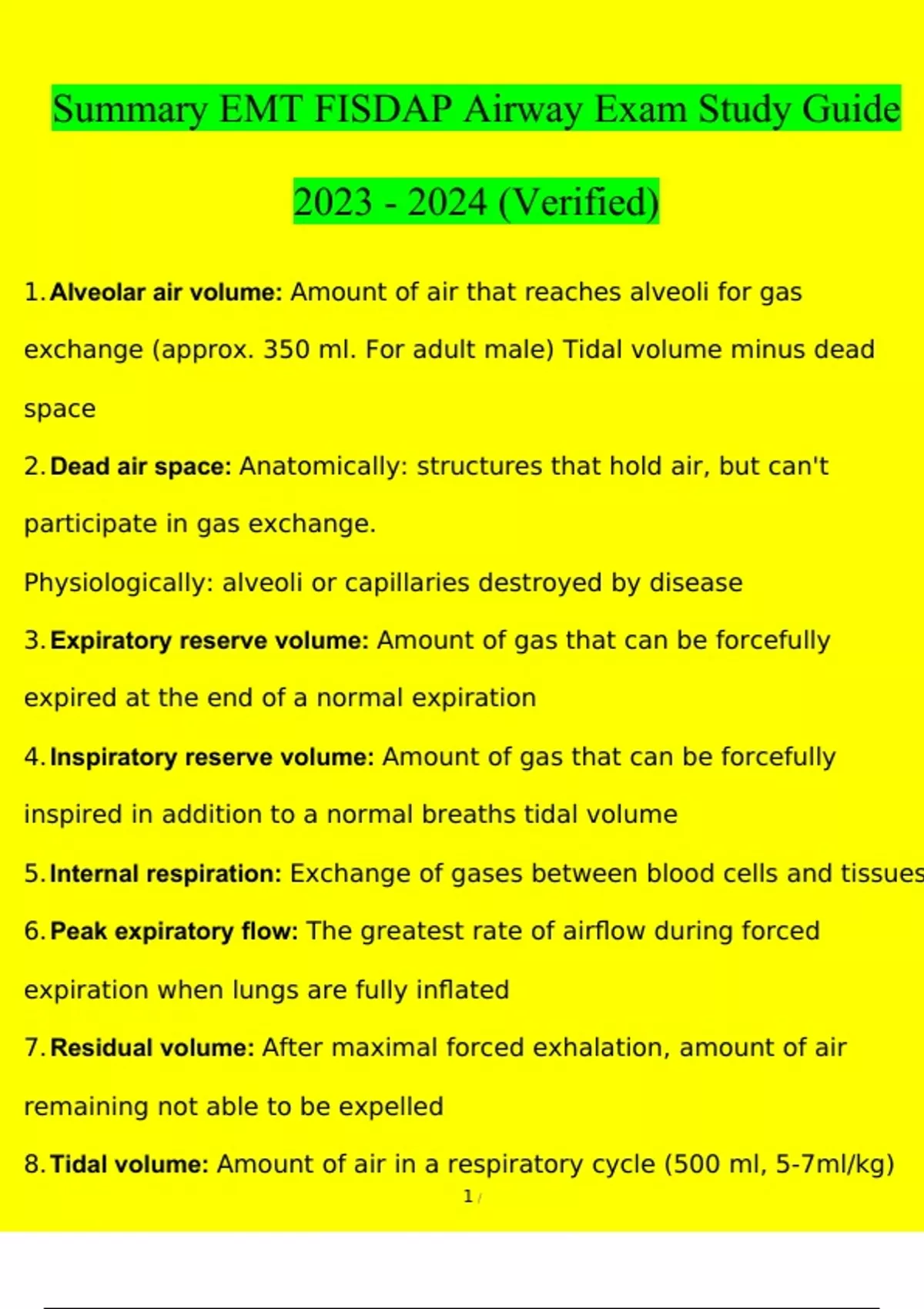 Summary EMT FISDAP Airway Exam Study Guide (Verified)
