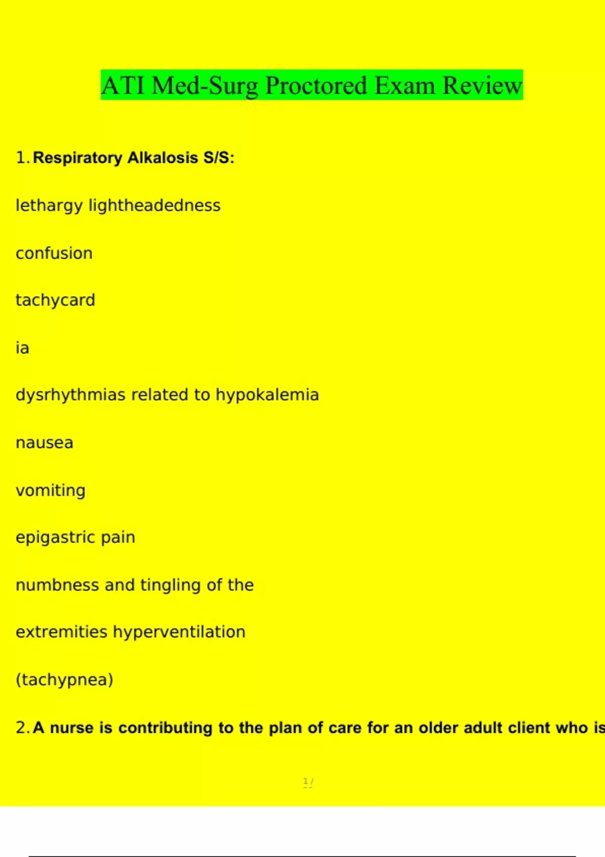 ATI Med-Surg Proctored Exam Review With All Solutions Complete