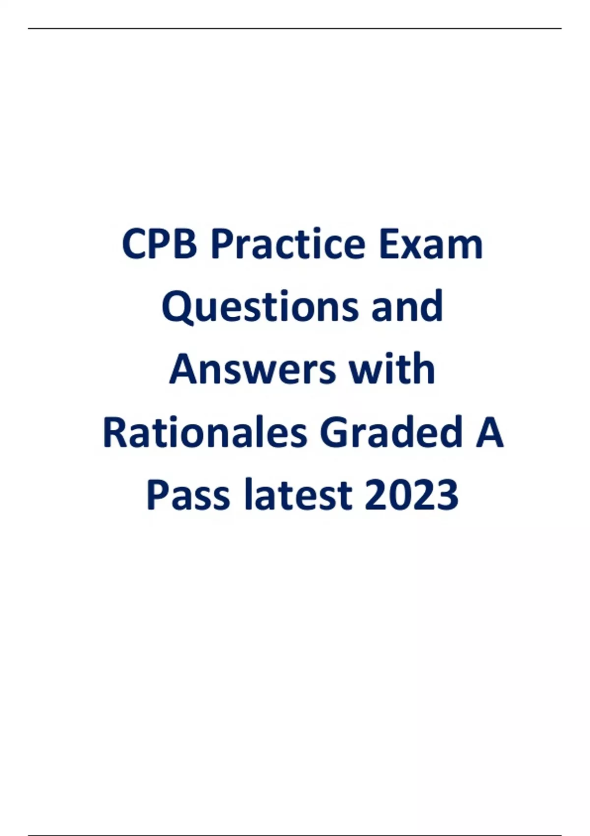 CPB Practice Exam Questions and Answers with Rationales latest 2023/2024