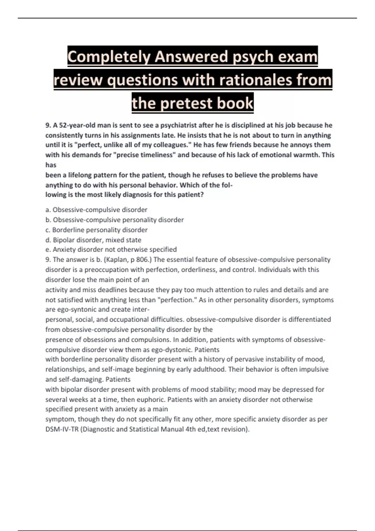 2024 psych exam review questions with explanations from the pretest book