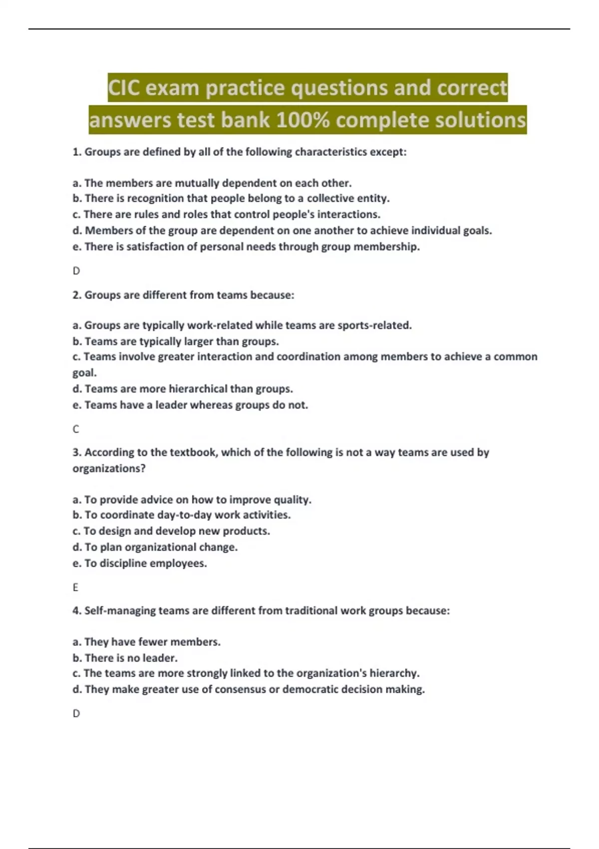 cic exam practice test bank questions and answers