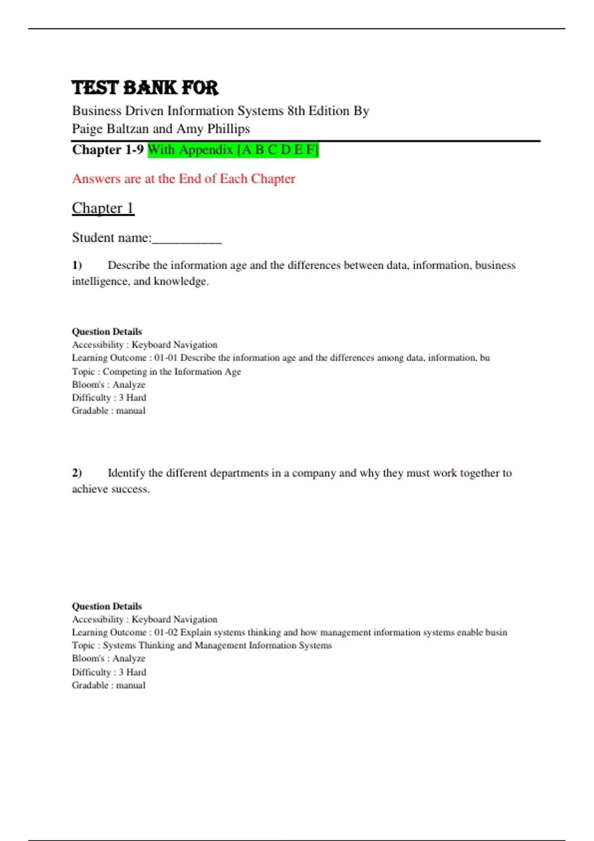Test Bank For Business Driven Information Systems 8th Edition By Paige Baltzan and Amy Phillips