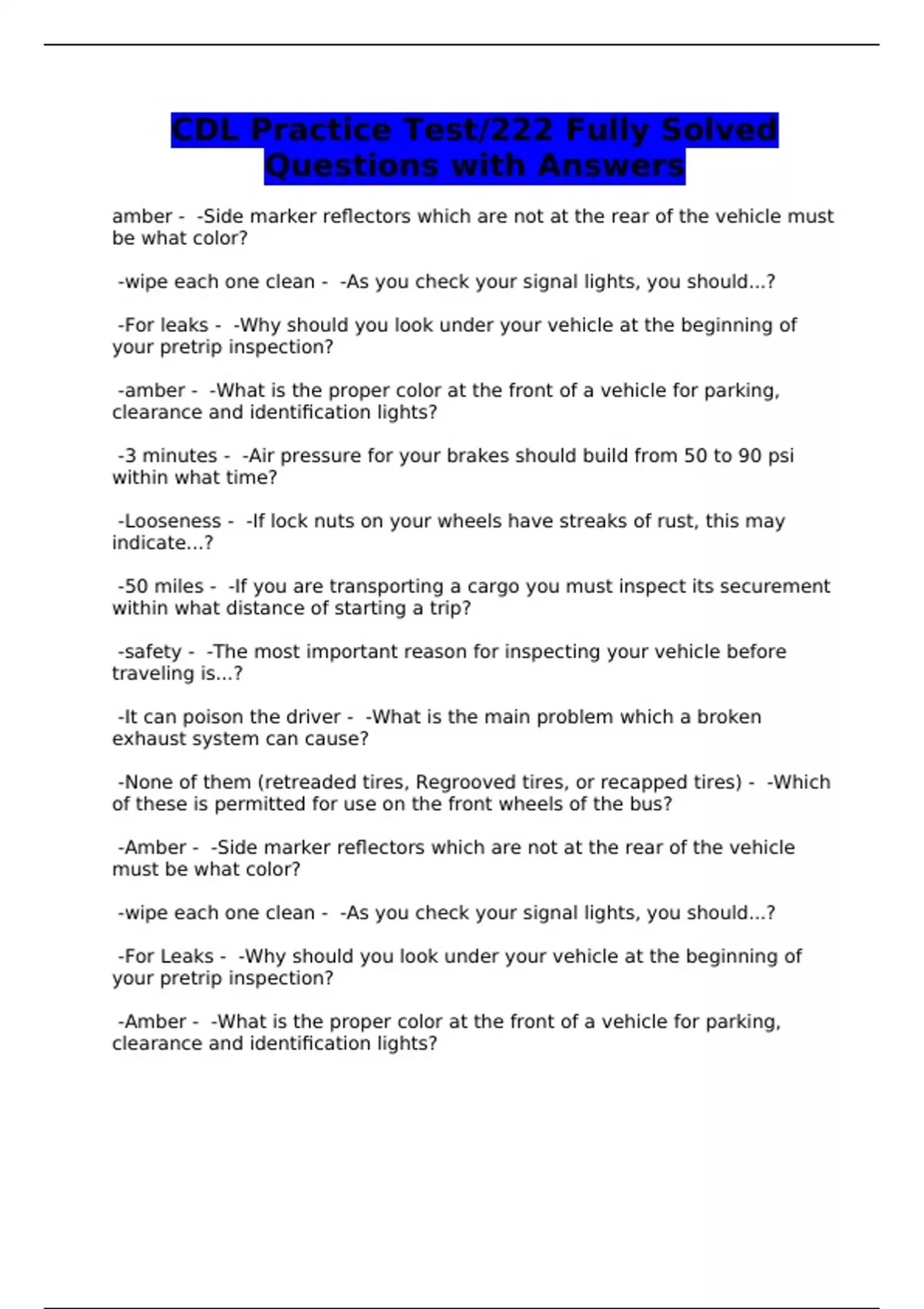 CDL Practice Test/222 Fully Solved Questions with Answers