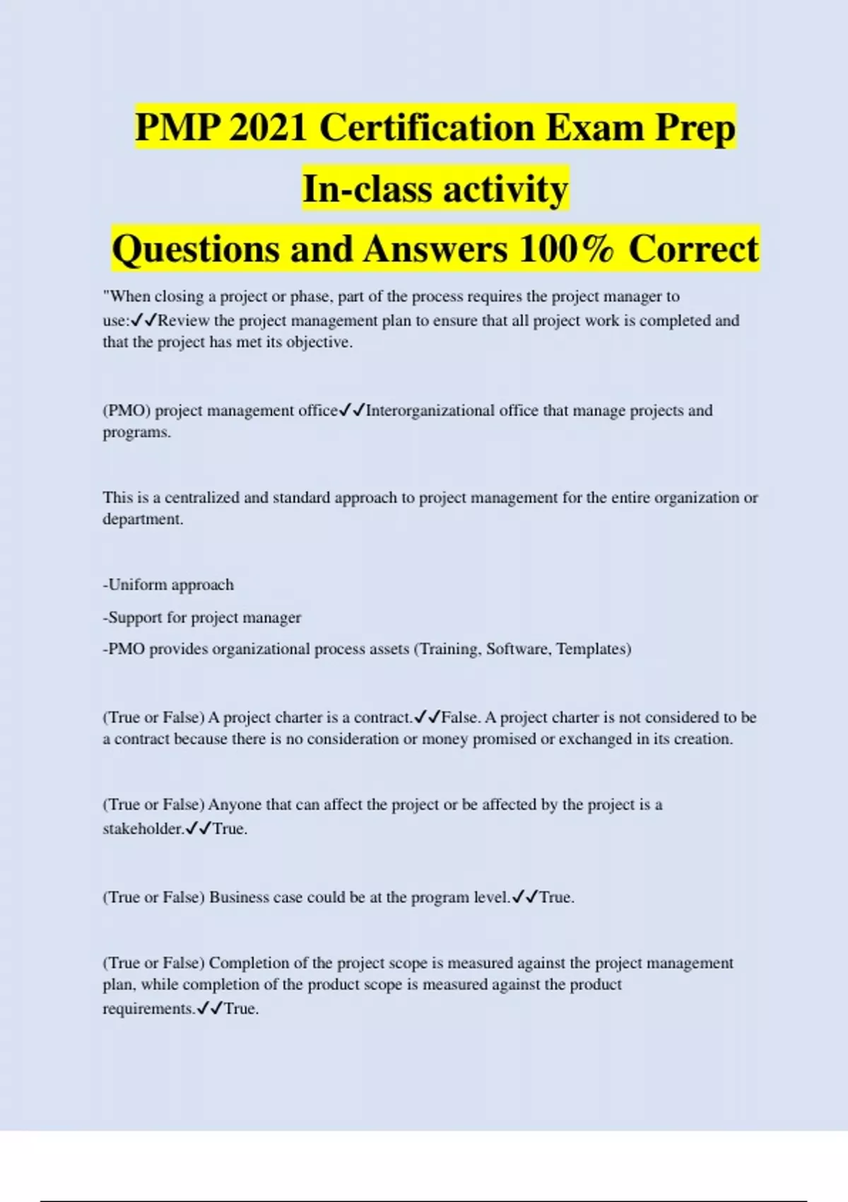 PMP 2021 Certification Exam Prep In-class activity Questions and Answers 100% Correct