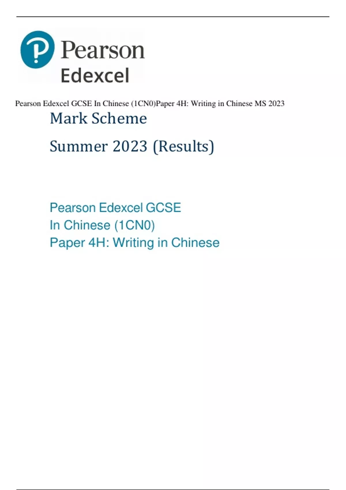 Pearson Edexcel GCSE In Chinese (1CN0)Paper 4H: Writing in Chinese MS 2023