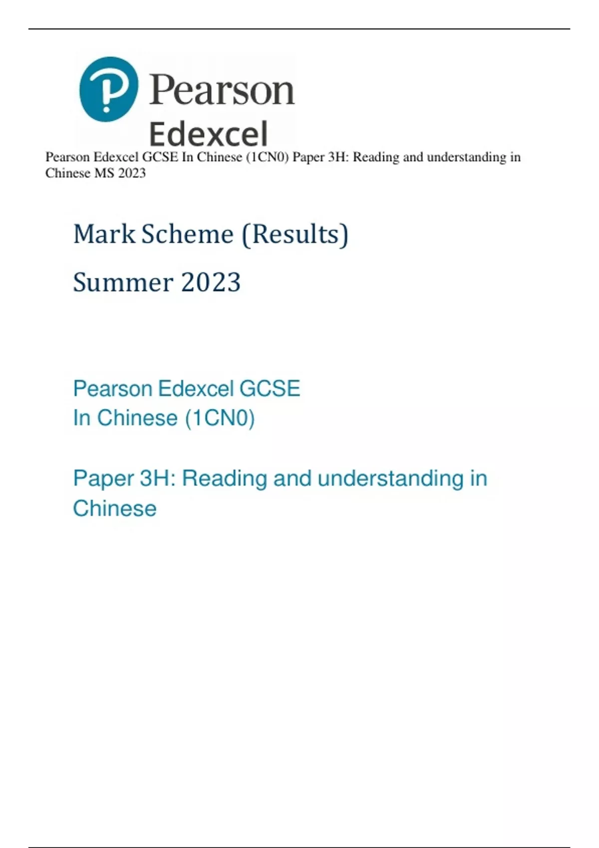 Pearson Edexcel GCSE In Chinese (1CN0) Paper 3H: Reading and understanding in Chinese MS 2023