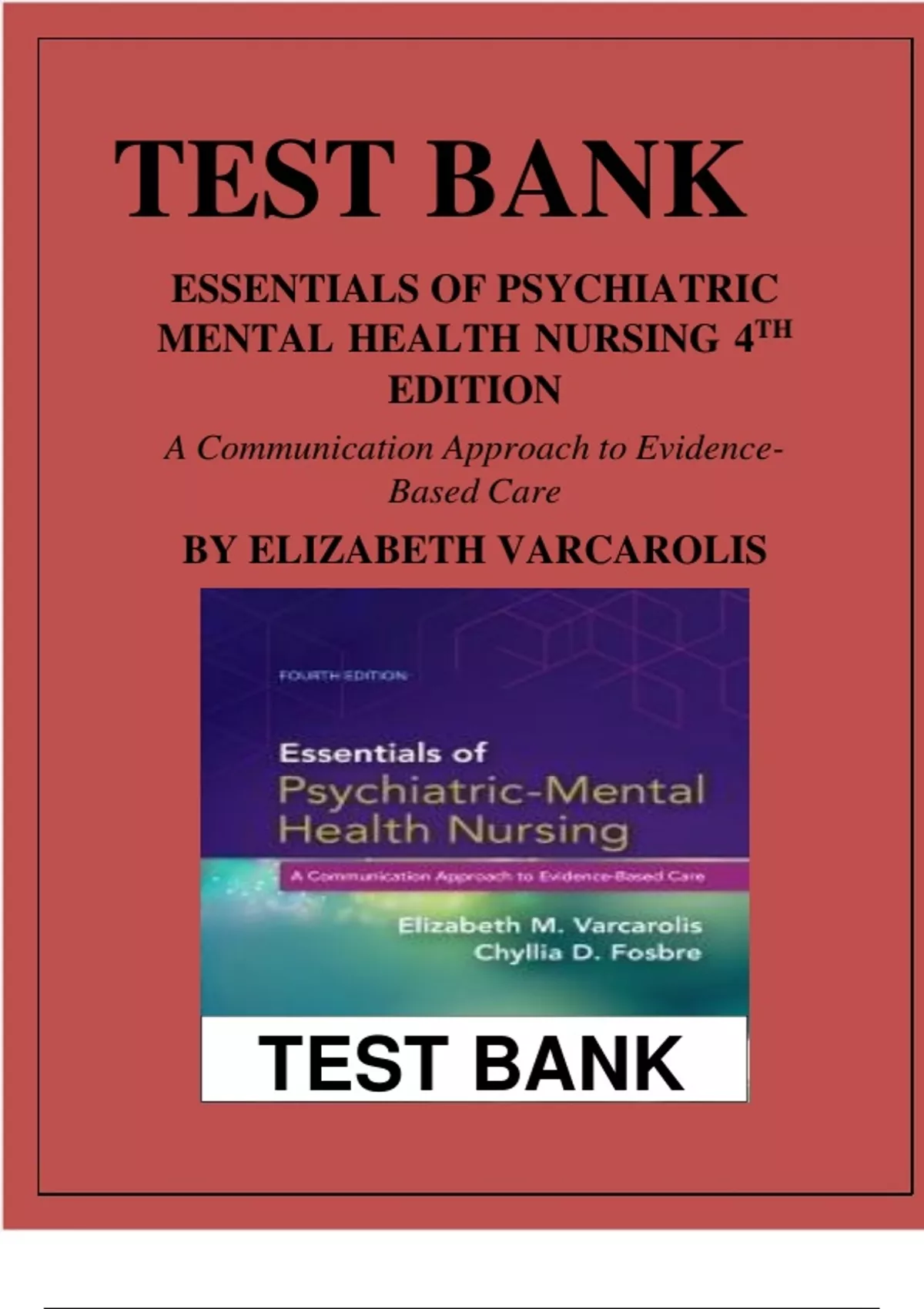 TEST BANK ESSENTIALS OF PSYCHIATRIC MENTAL HEALTH NURSING 4TH EDITION A Communication Approach to Evidence Based Care BY ELIZABETH VARCAROLIS Latest Verified Review 2024 Practice Questions and Answers for Exam Preparation, 100% Correct with Explanations,