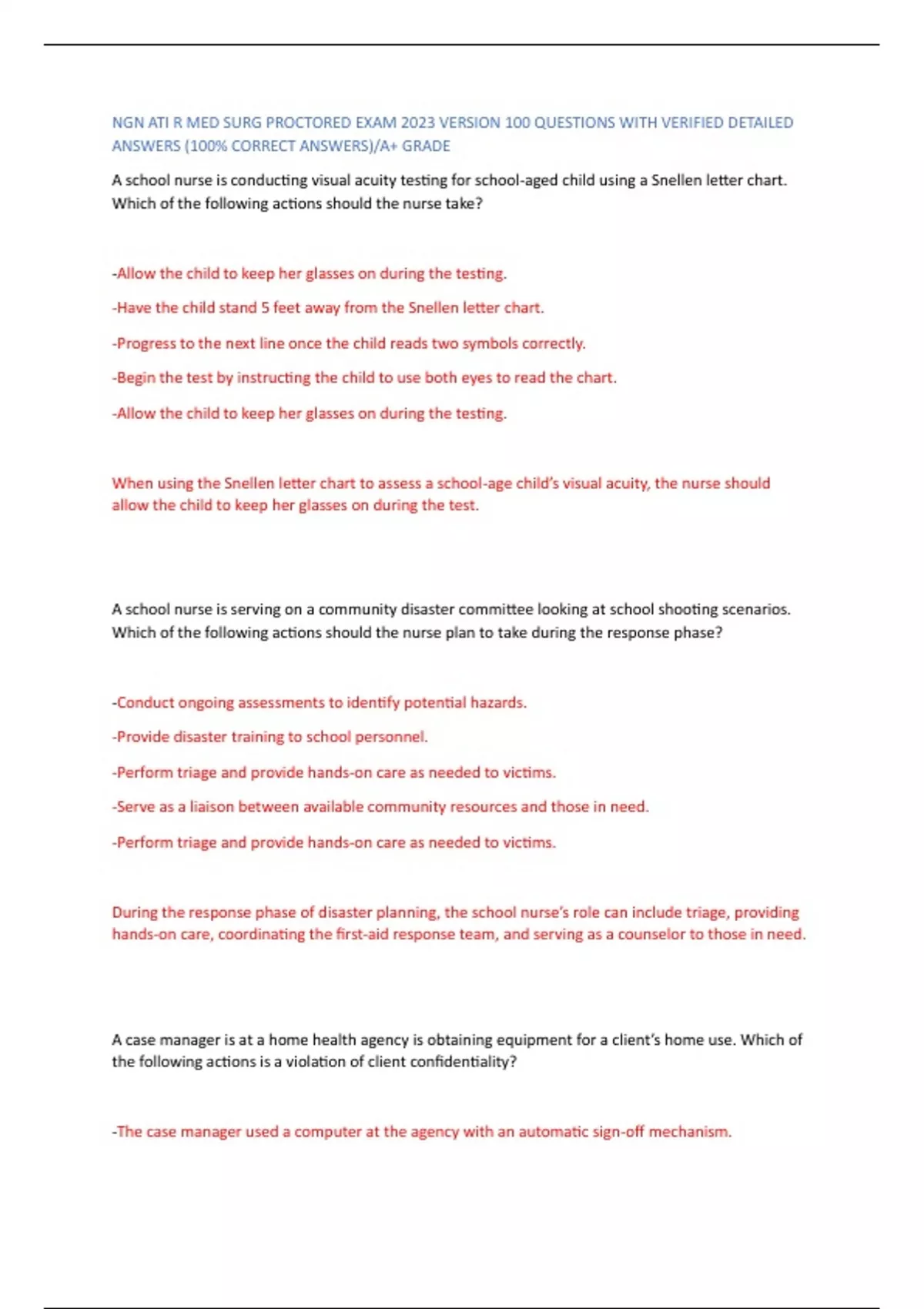 NGN ATI R MED SURG PROCTORED EXAM 2023 VERSION 100 QUESTIONS WITH VERIFIED DETAILED ANSWERS (100% CORRECT ANSWERS)/A+ GRADE
