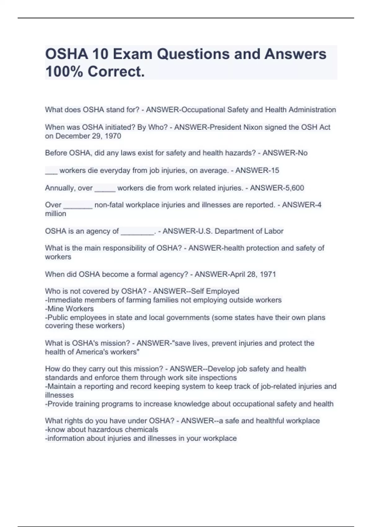 OSHA 10 Exam Questions and Answers 100% Correct.