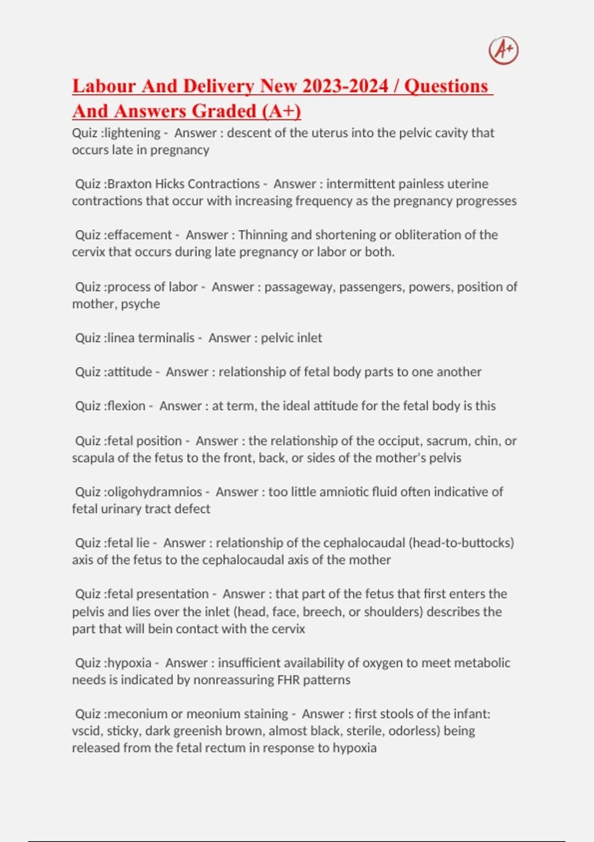Quiz :expulsion - Answer : the body of the infant leaves the pelvis