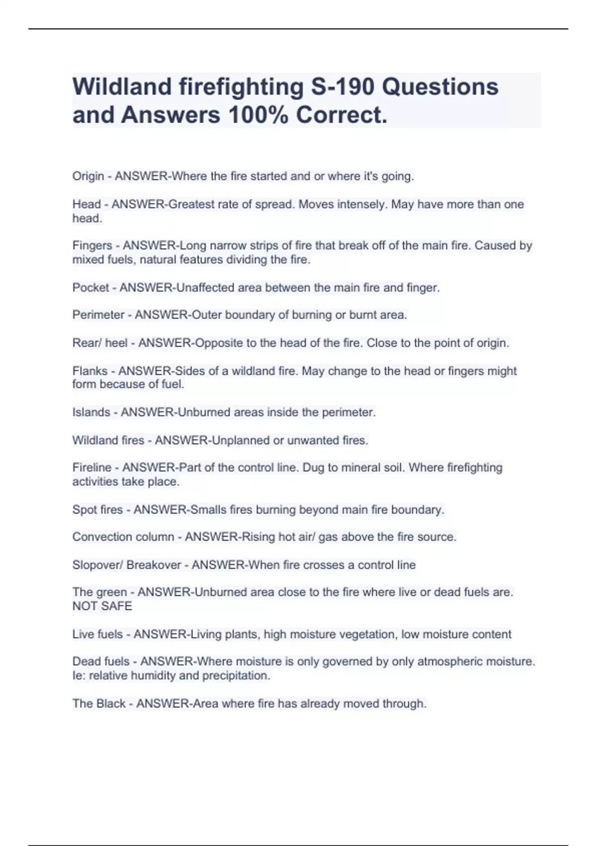 Wildland firefighting S-190 Questions and Answers 100% Correct.