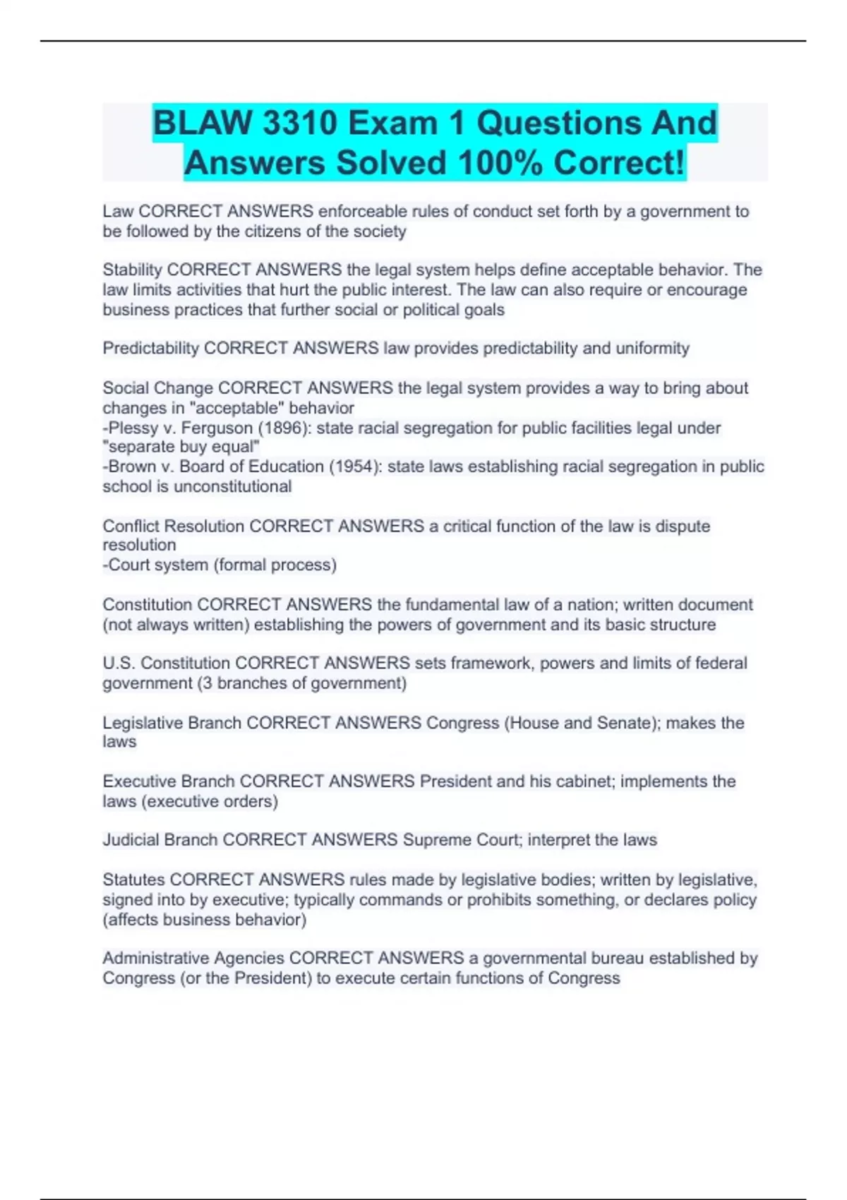 BLAW 3310 Exam 1 Questions And Answers Solved