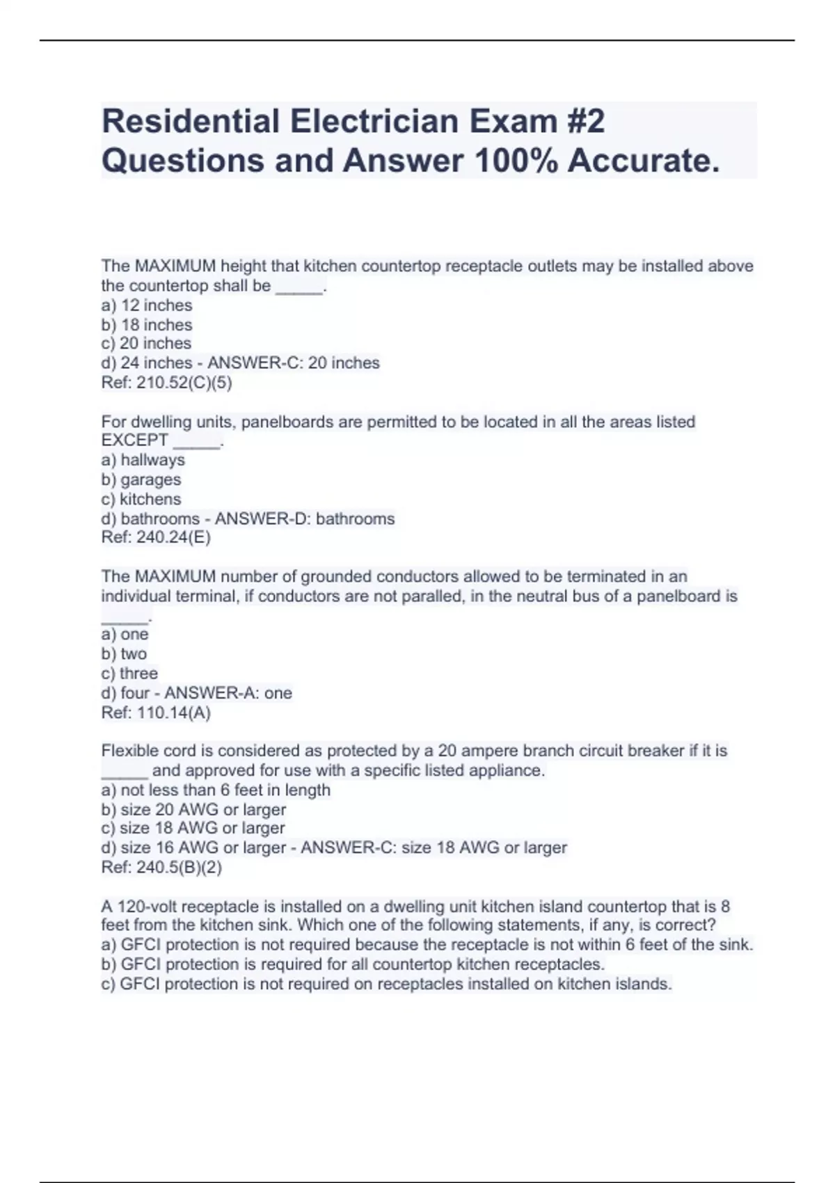 Residential Electrician Exam #2 Questions and Answer 100% Accurate. Residential Electrician Exam #2 Questions and Answer 100% Accurate. Residential Electrician Exam #2 Questions and Answer 100% Accurate. Residential Electrician Exam #2 Questions and Answer 100% Accurate. Residential Electrician Exam #2 Questions and Answer 100% Accurate. Residential Electrician Exam #2 Questions and Answer 100% Accurate. Residential Electrician Exam #2 Questions and Answer 100% Accurate. Residential Electrician Exam #2 Questions and Answer 100% Accurate. Residential Electrician Exam #2 Questions and Answer 100% Accurate. Residential Electrician Exam #2 Questions and Answer 100% Accurate. Residential Electrician Exam #2 Questions and Answer 100% Accurate. Residential Electrician Exam #2 Questions and Answer 100% Accurate.